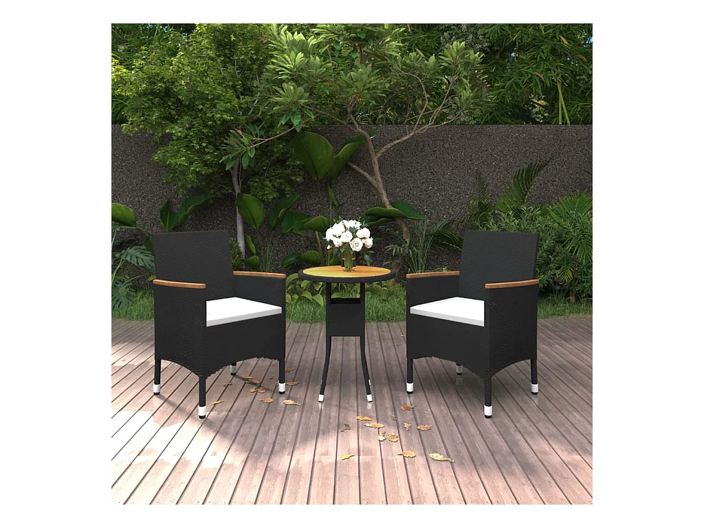 3-tlg. Garten-Essgruppe,Gartensitzgruppe Poly Rattan Schwarz -gkd16037