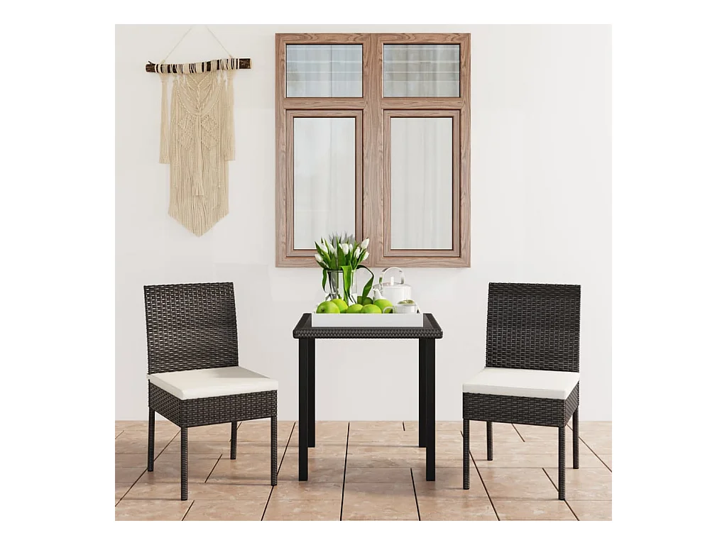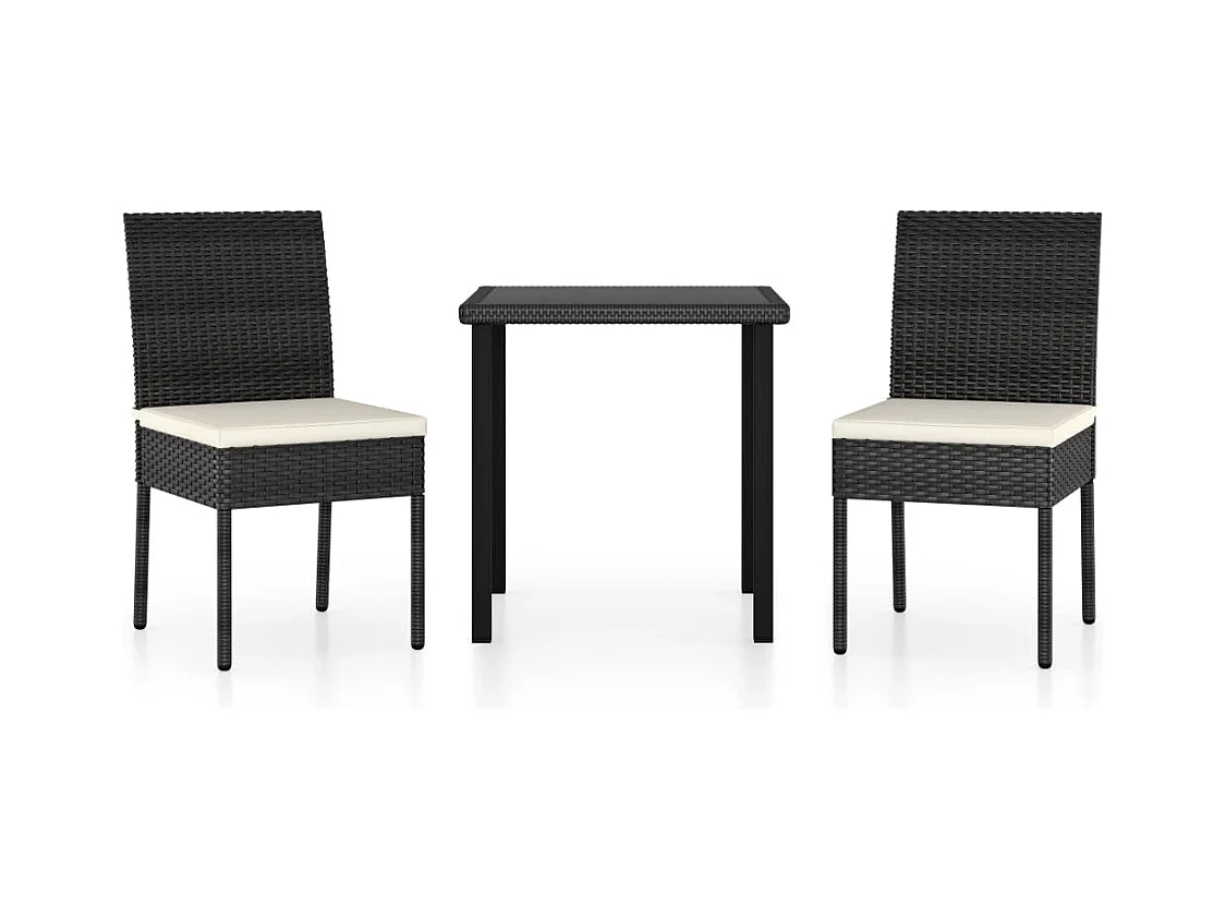 3-tlg. Garten-Essgruppe,Gartensitzgruppe Poly Rattan Schwarz -gkd71060