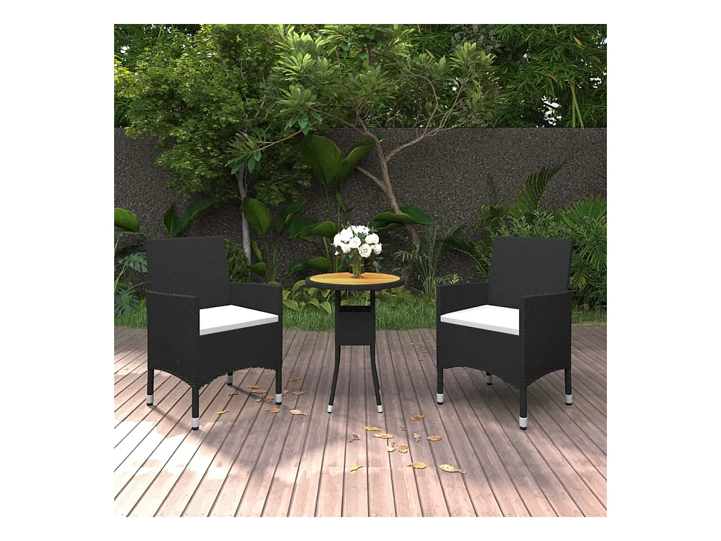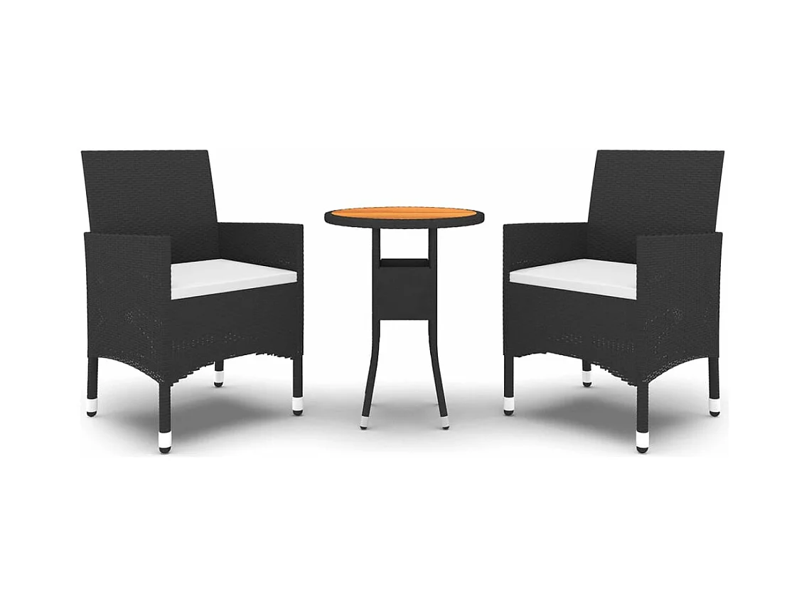 3-tlg. Garten-Essgruppe,Gartensitzgruppe Poly Rattan Schwarz -gkd85287