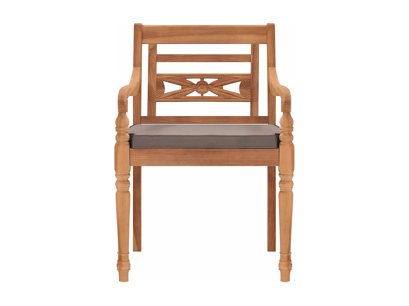 3-tlg. Garten-Essgruppe mit Dunkelgrauen Kissen Massivholz Teak