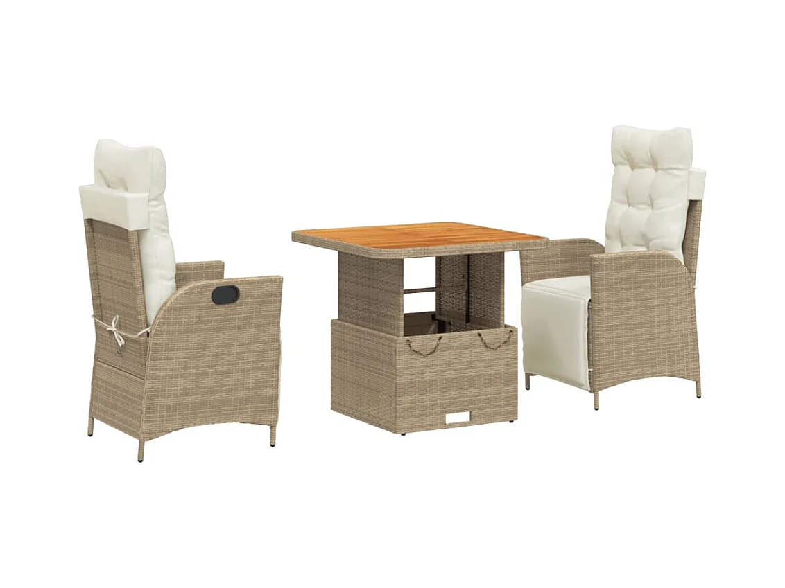 3-tlg. Garten-Essgruppe mit Kissen Beige Poly Rattan