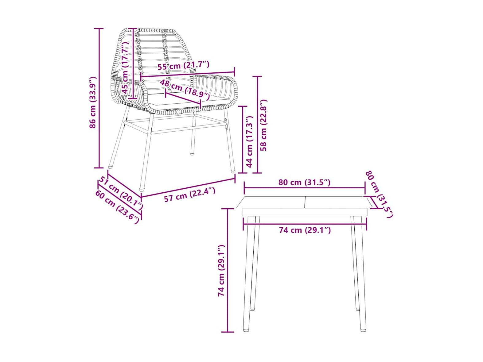• Abmessungen: 80 x 80 x 74 cm (L x B x H)
