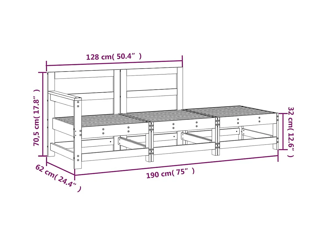3-tlg. Garten-Lounge-Set Grau Massivholz Kiefer