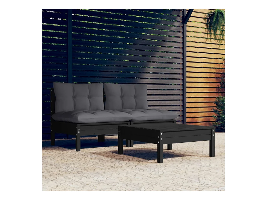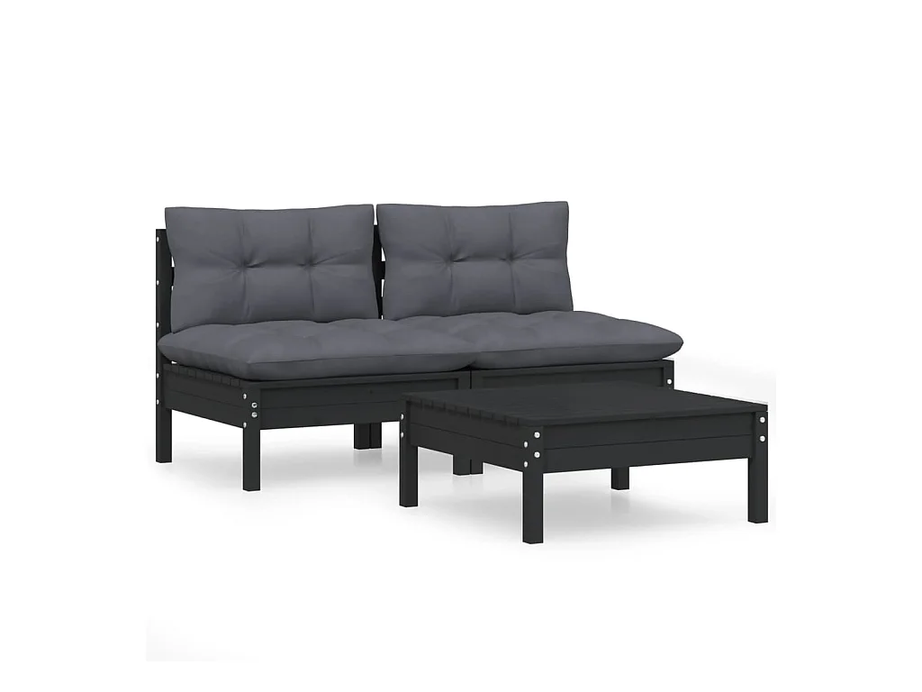 3-tlg. Garten-Lounge-Set mit Anthrazit Kissen Kiefernholz