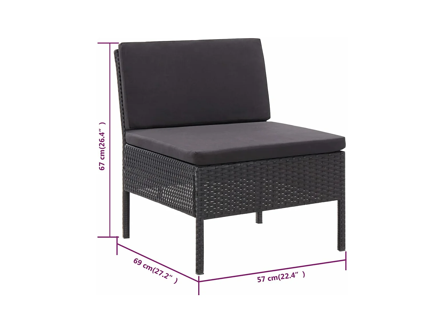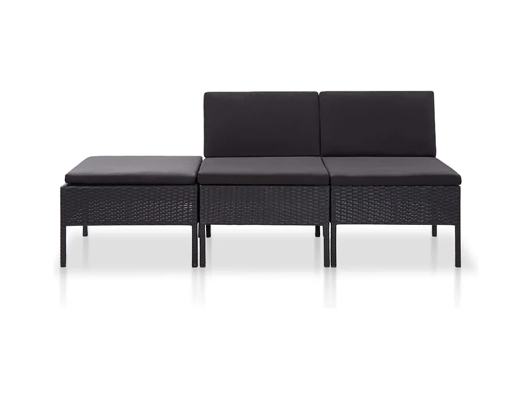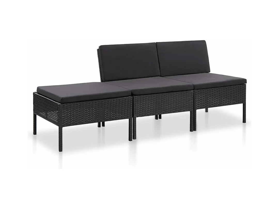3-tlg. Garten-Lounge-Set mit Auflagen Poly Rattan Schwarz