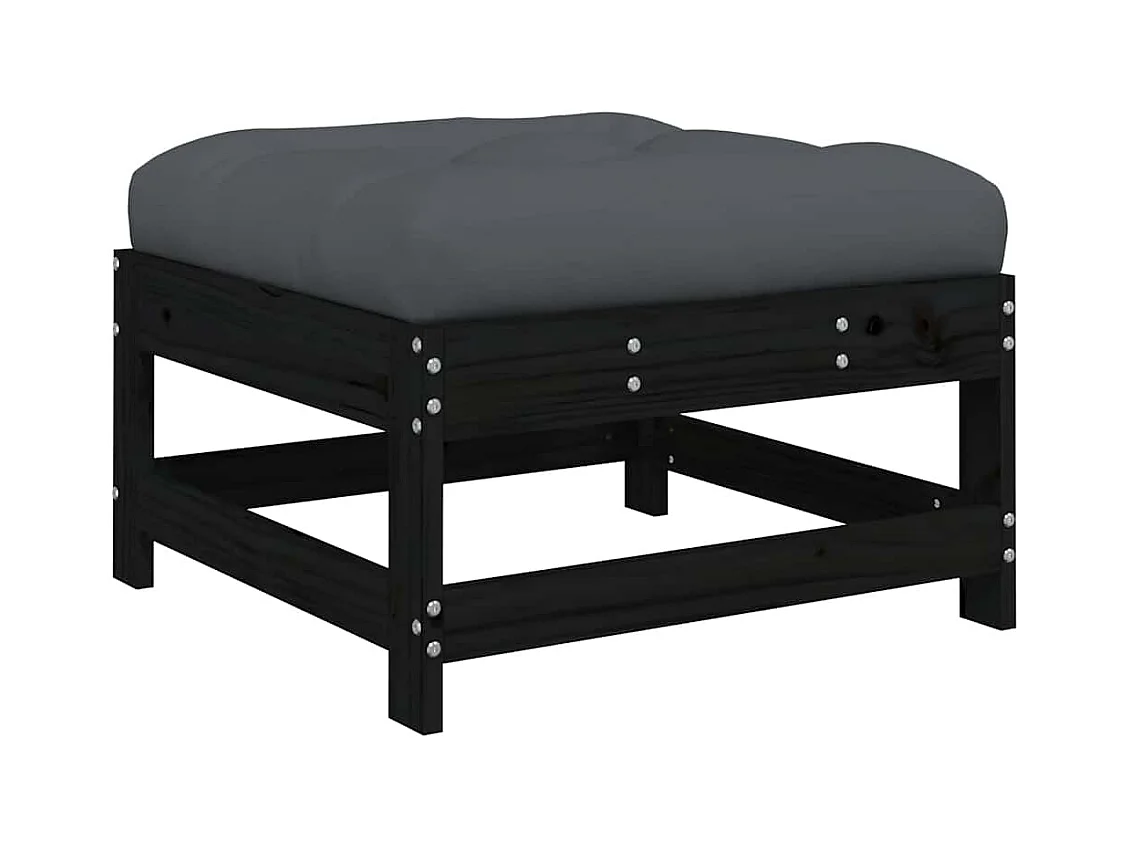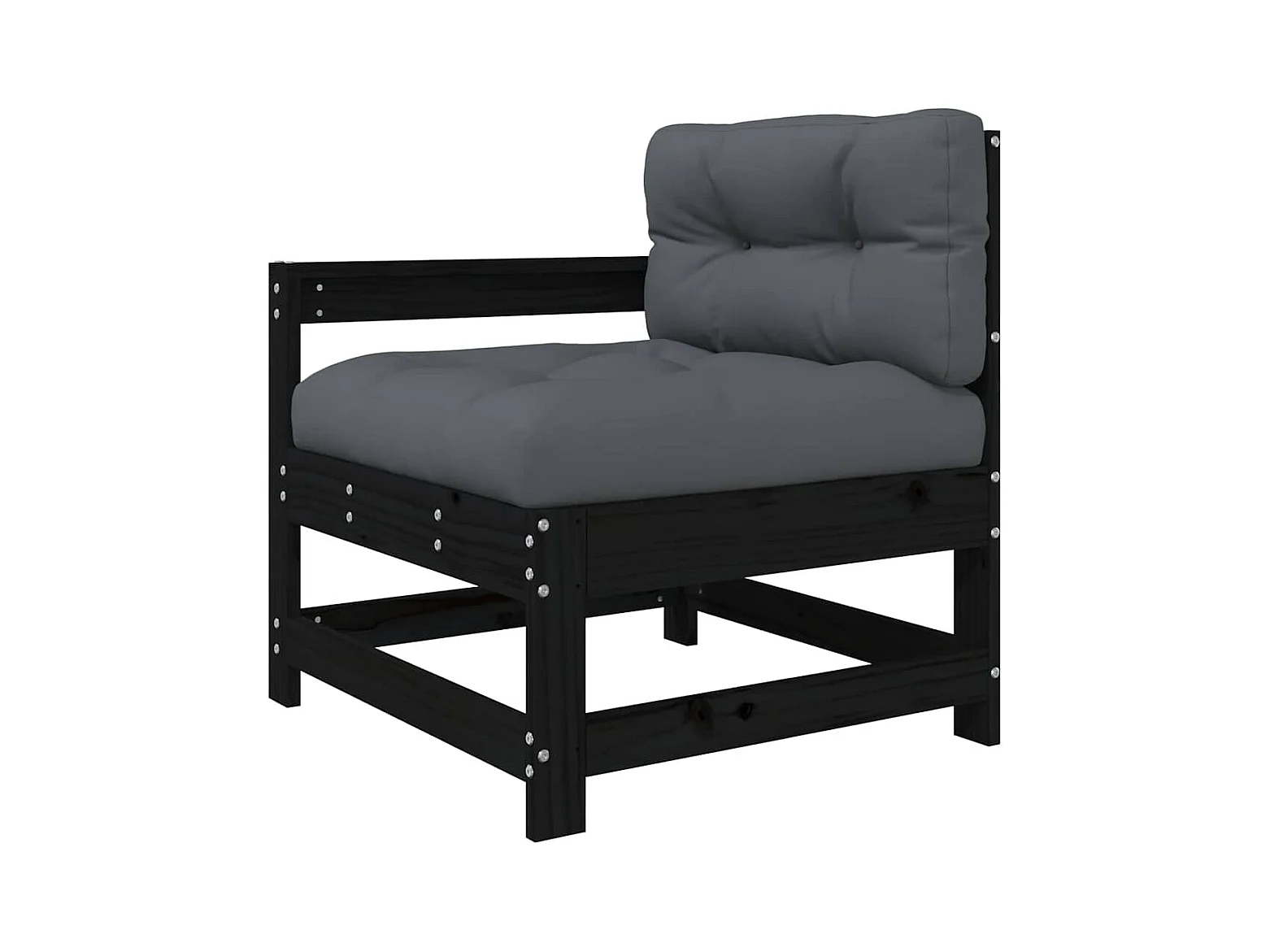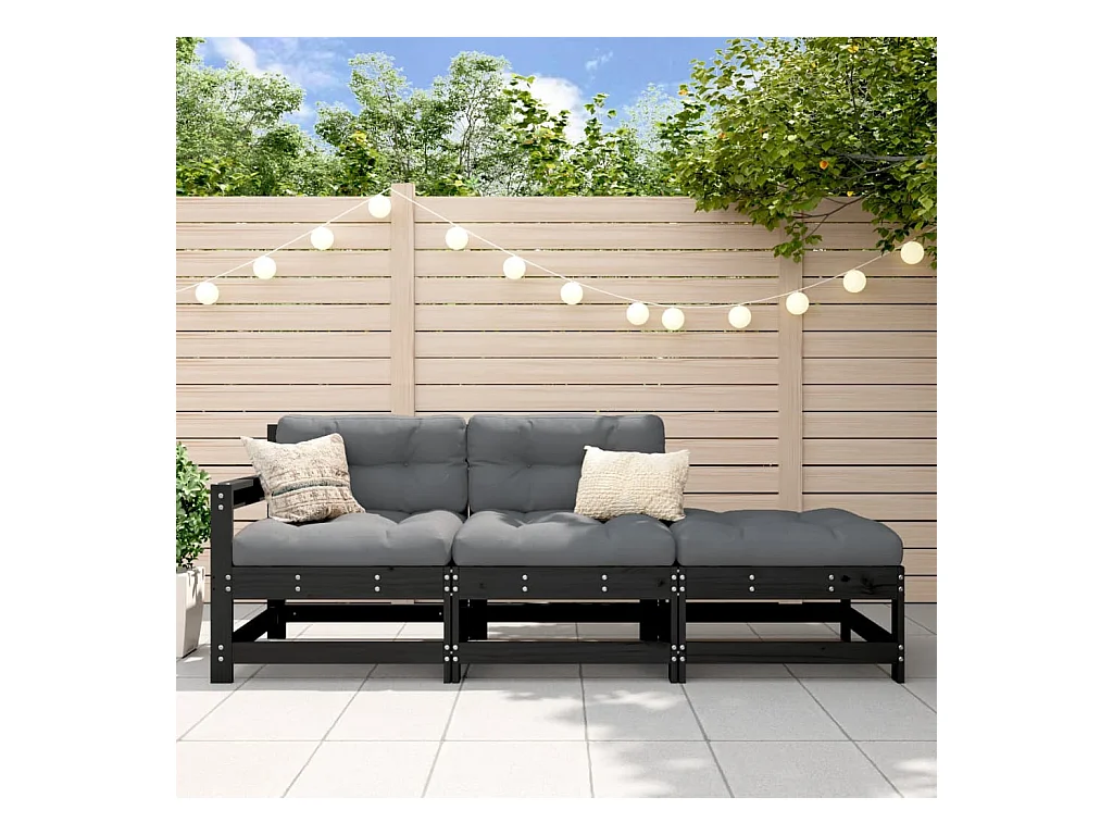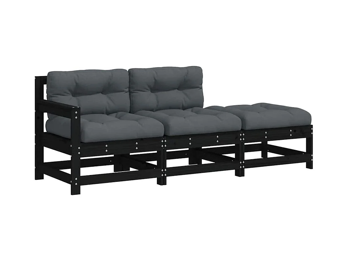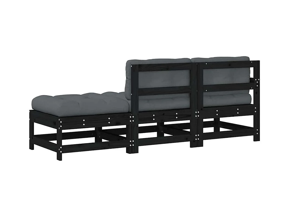 3-tlg. Garten-Lounge-Set mit Kissen Schwarz Massivholz