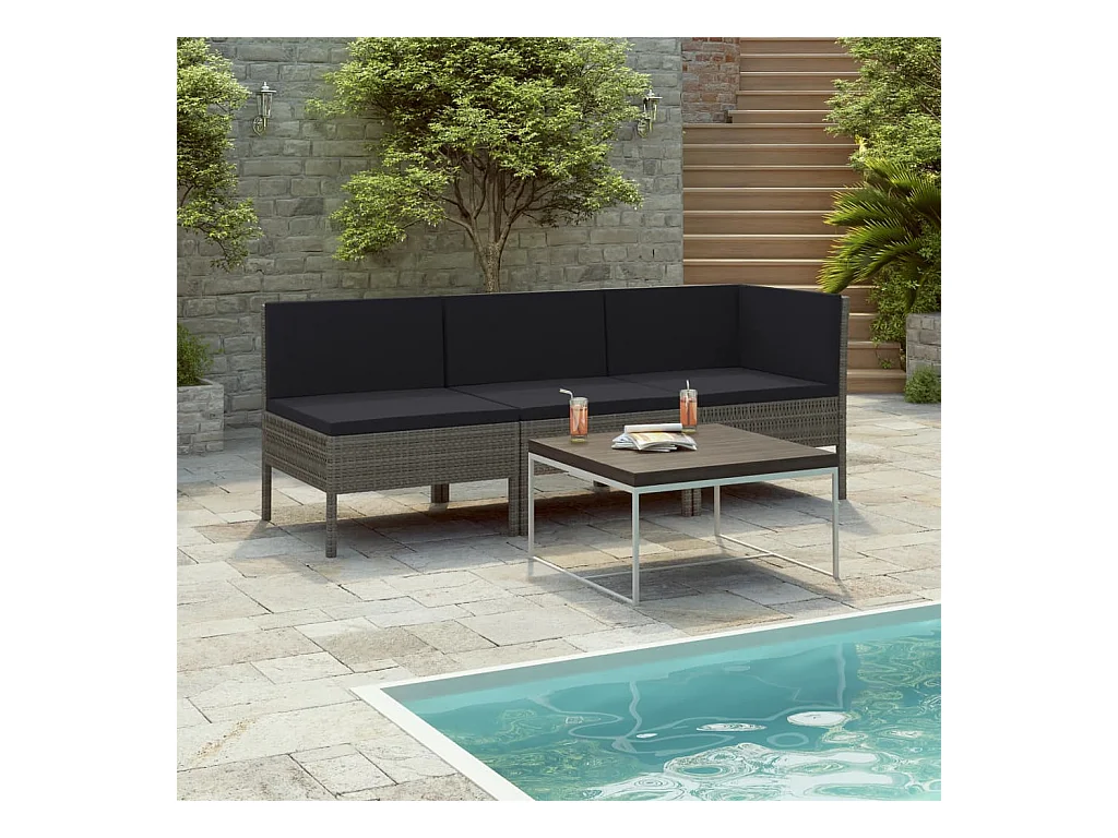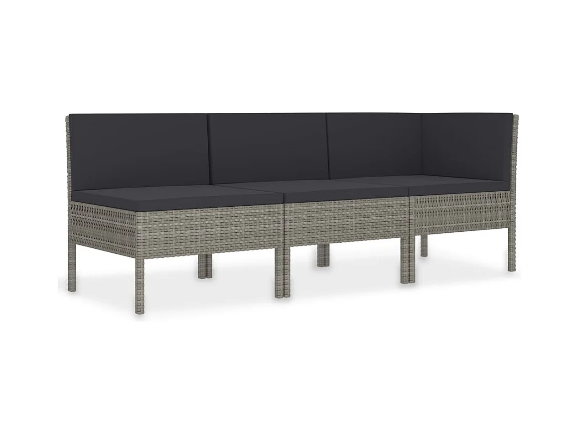 3-tlg. Garten-Sitzgruppe | Garten-Lounge-Set mit Auflagen Poly Rattan Grau -GKD249508