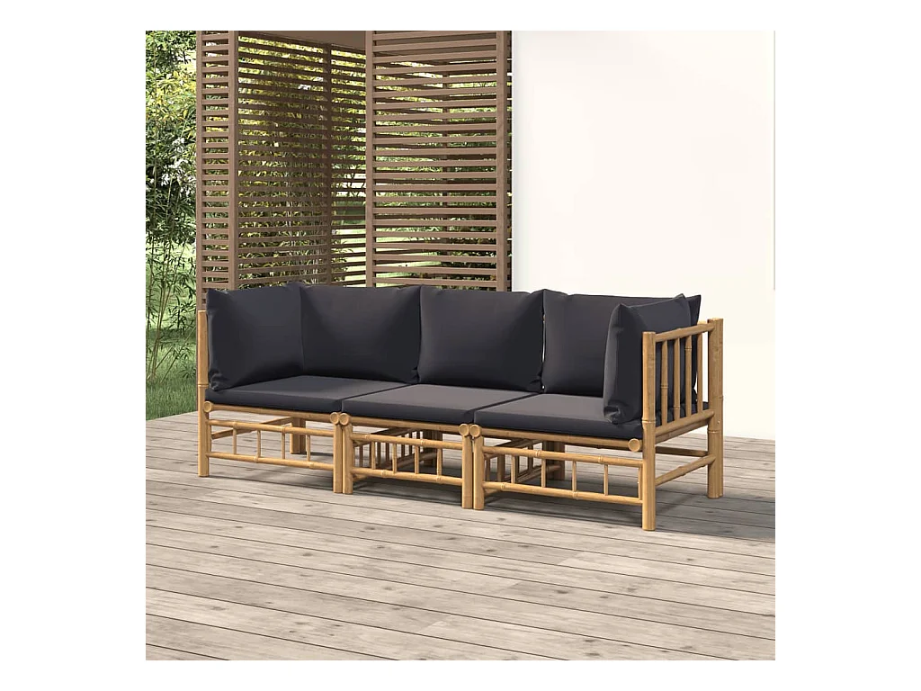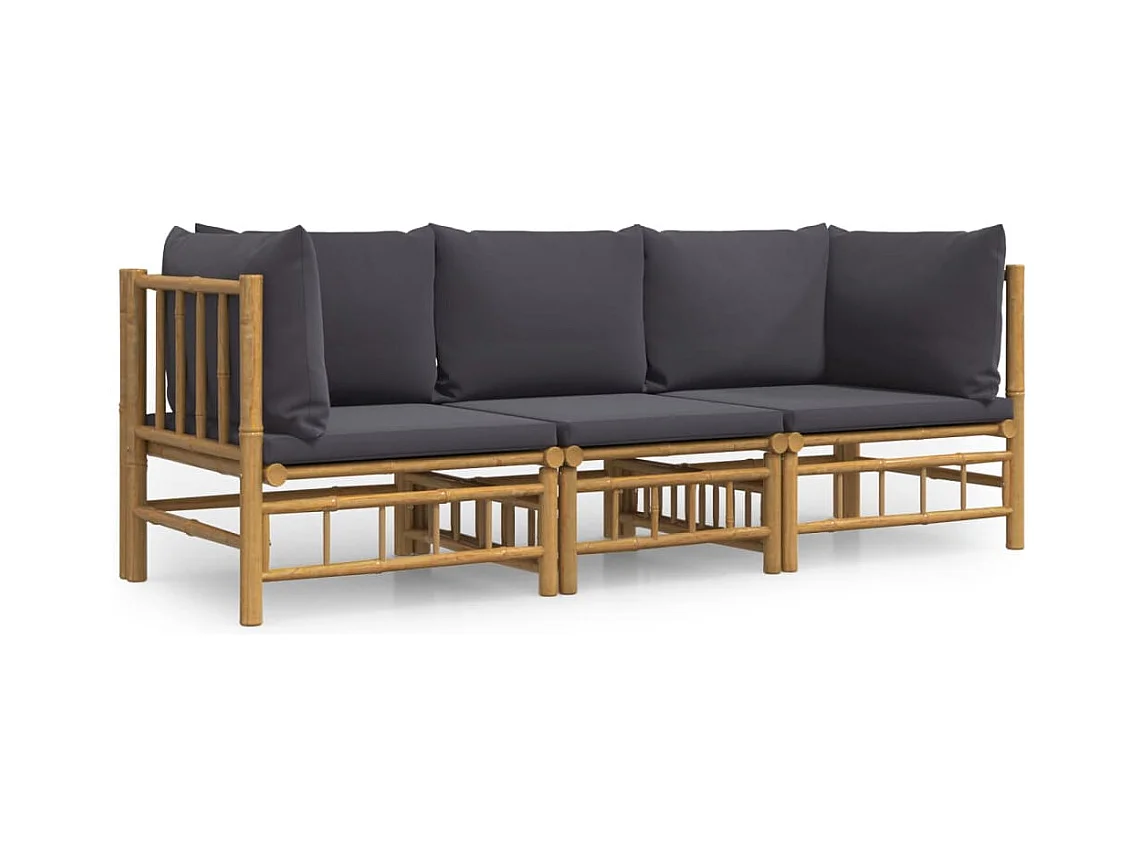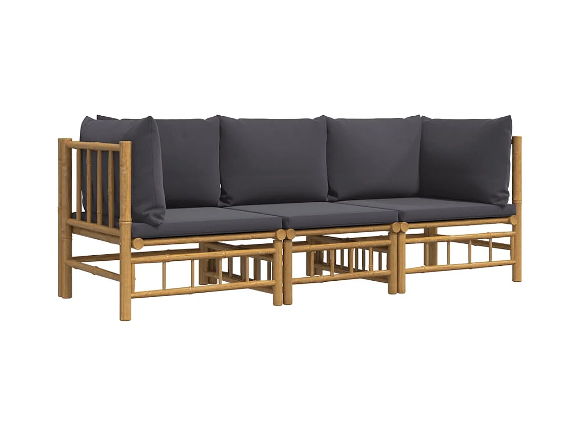 3-tlg. Garten-Sitzgruppe | Garten-Lounge-Set mit Dunkelgrauen Kissen Bambus -GKD560286