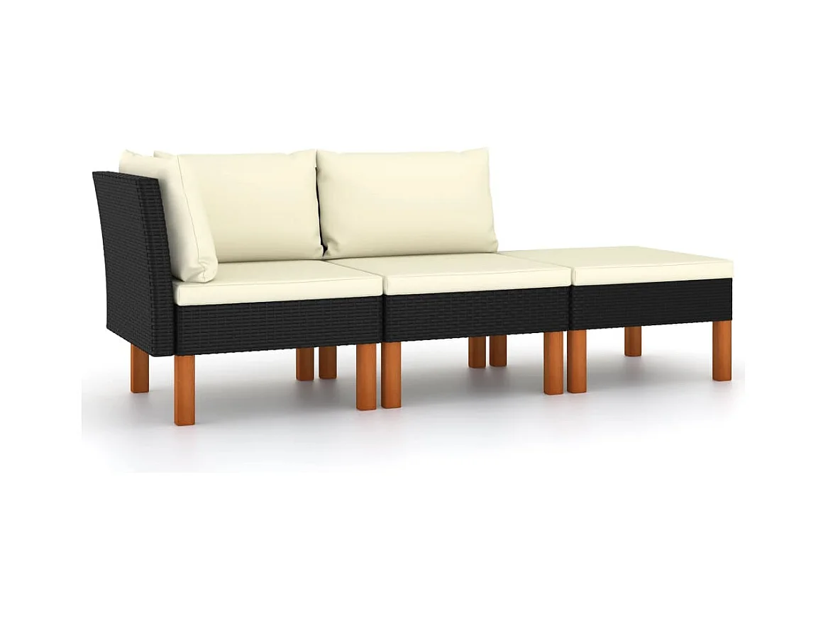 3-tlg. Garten-Sitzgruppe | Garten-Lounge-Set Poly Rattan und Eukalyptus Massivholz -GKD254956