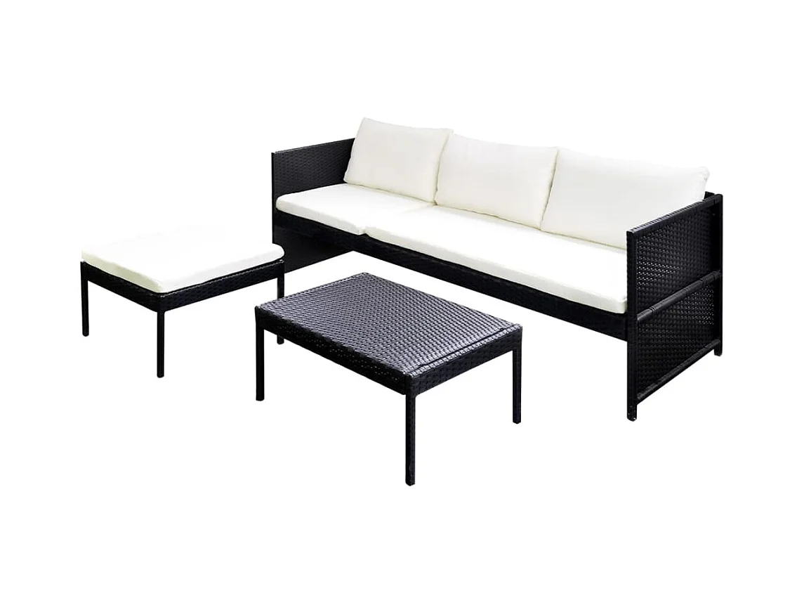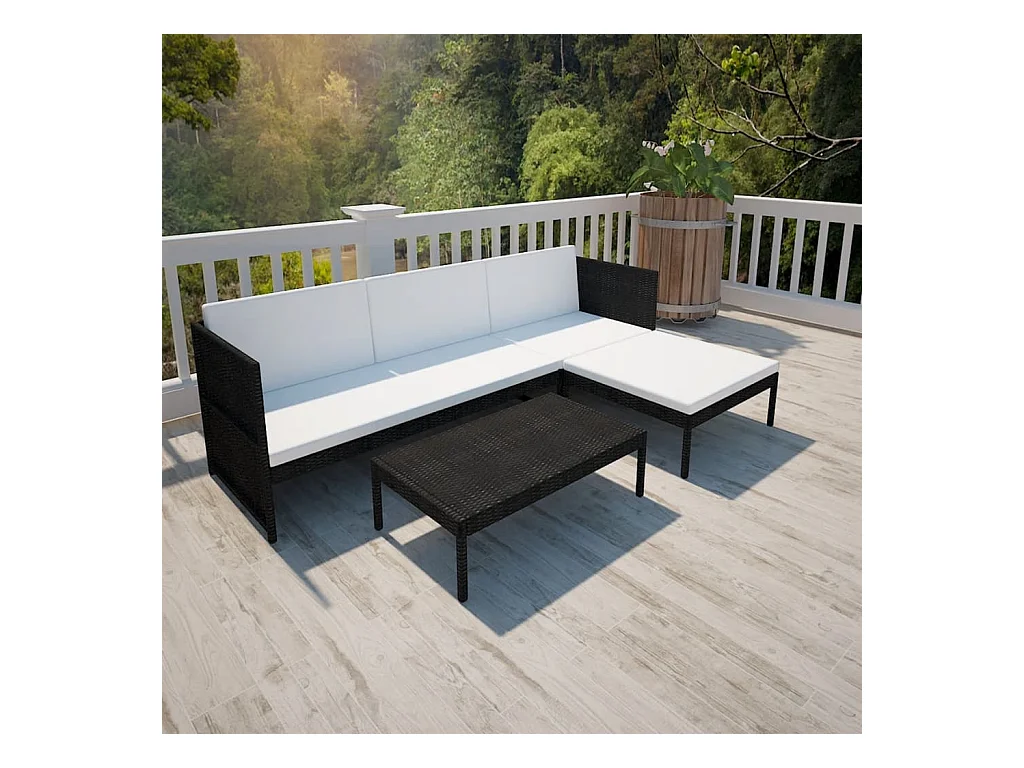 3-tlg. Garten-Sitzgruppe: Sofa + Tisch | Garten-Lounge-Set mit Auflagen Poly Rattan Schwarz -GKD530713