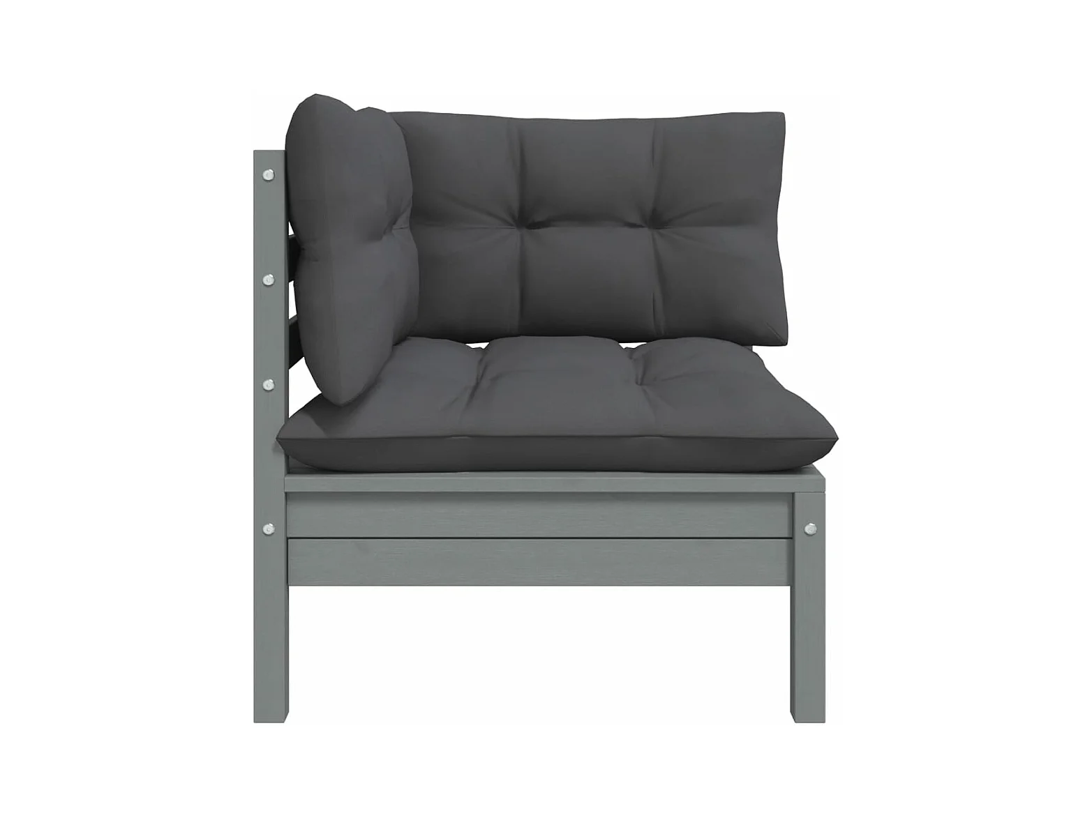 3-tlg. Garten-Sitzgruppe: Sofa + Tisch | Garten-Lounge-Set mit Kissen Grau Kiefer Massivholz -GKD640738