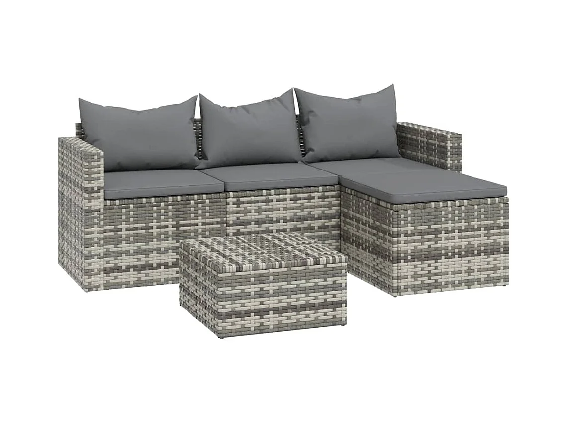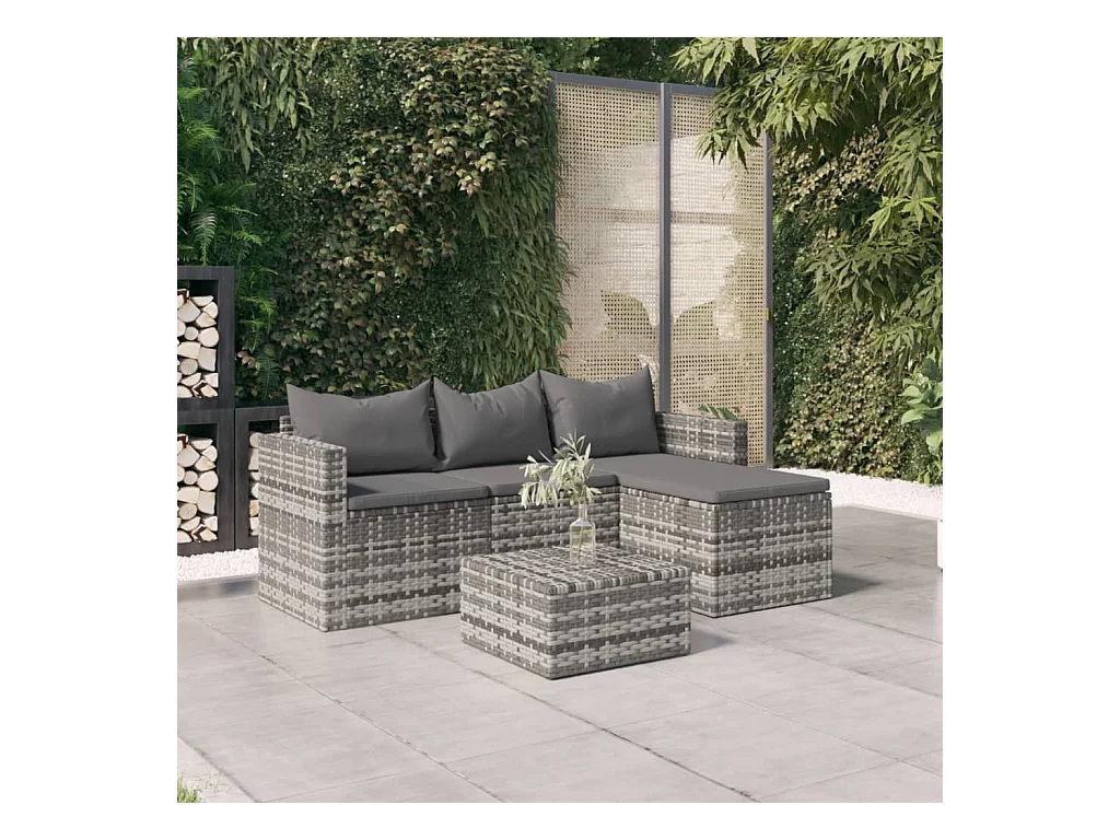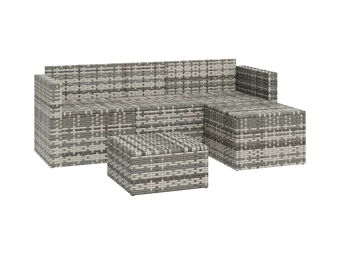 3-tlg. Garten-Sitzgruppe: Sofa + Tisch | Garten-Lounge-Set mit Kissen Grau Poly Rattan -GKD213854
