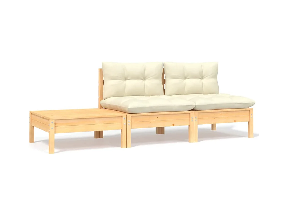 3-tlg. Garten-Sitzgruppe: Sofa + Tisch | Garten-Lounge-Set mit Kissen in Creme Massivholz Kiefer -GKD569105