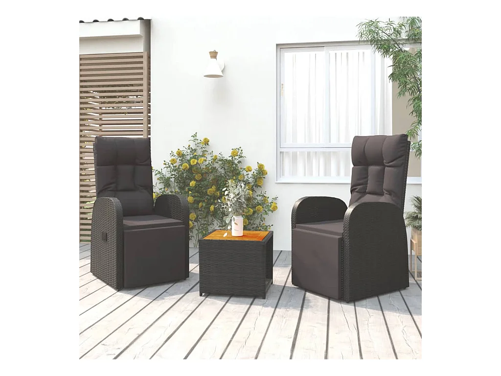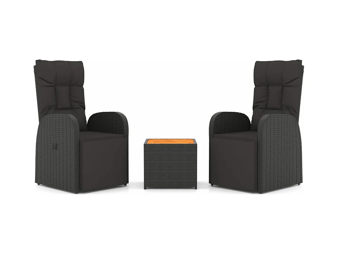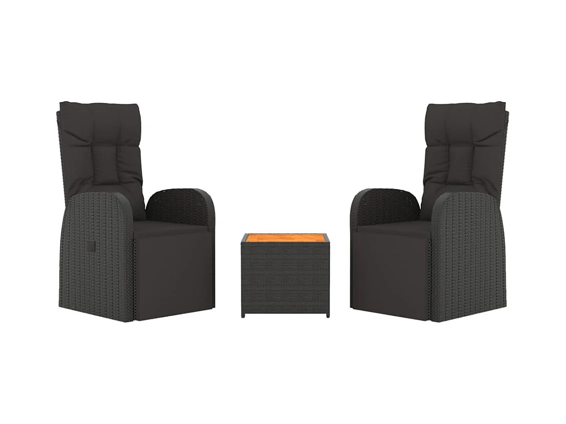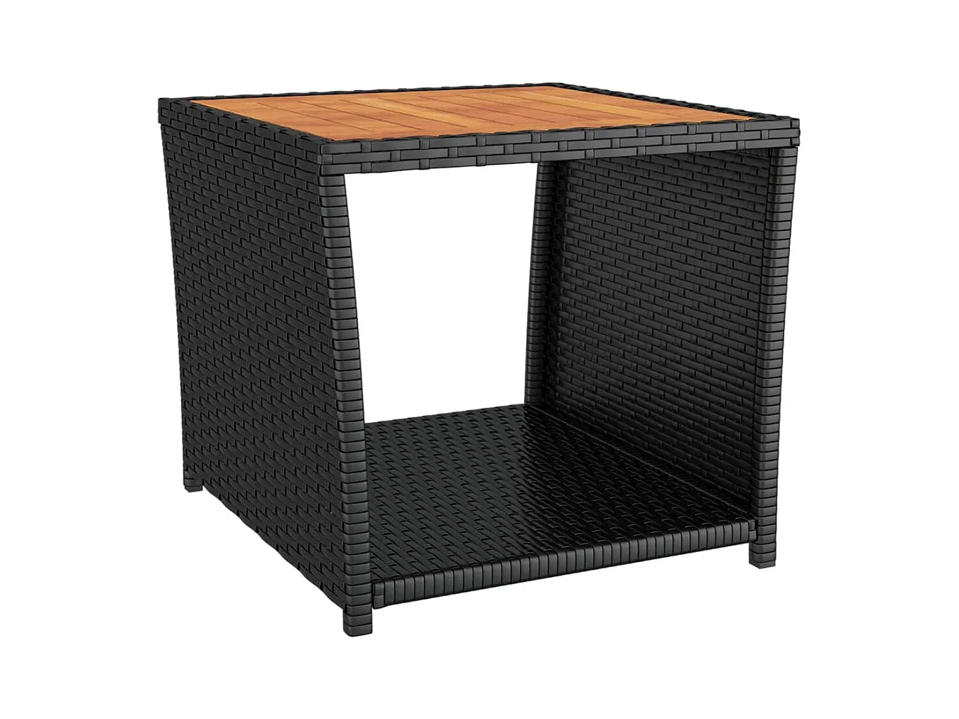 3-tlg. Garten-Sitzgruppe: Sofa + Tisch | Garten-Lounge-Set Schwarz Poly Rattan Massivholz Akazie -GKD539622