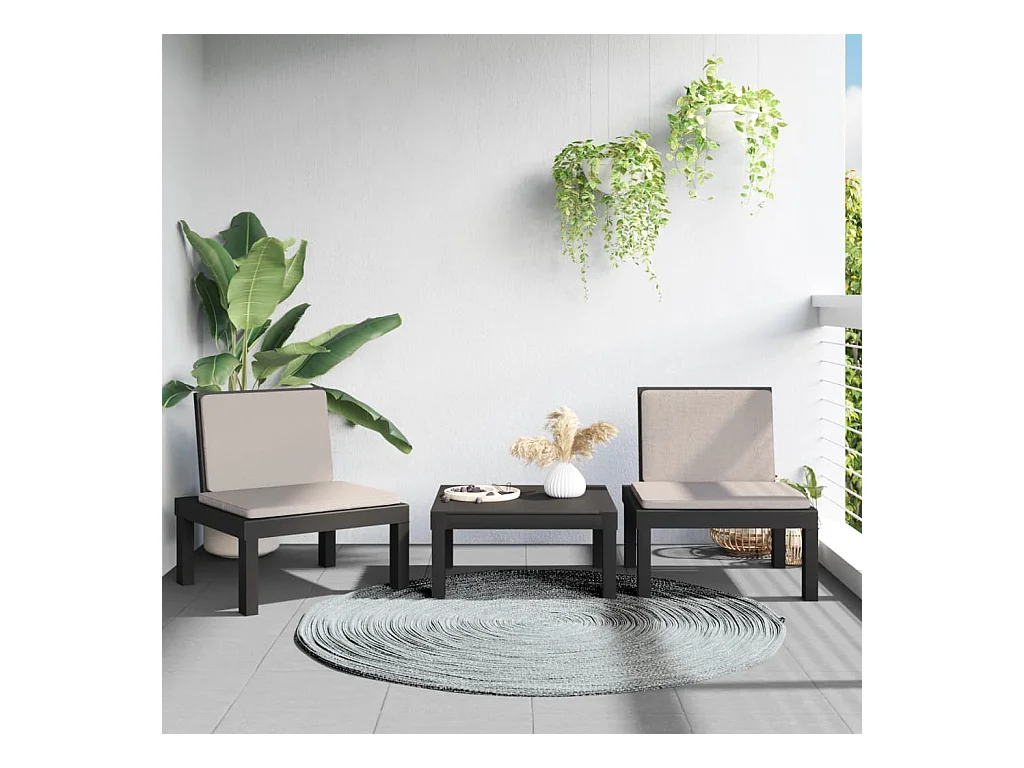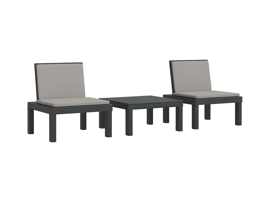 3-tlg. Garten-Sitzgruppe: Sonnenliege + Stühle + Tisch | Garten-Lounge-Set mit Kissen Anthrazit PP -GKD905134