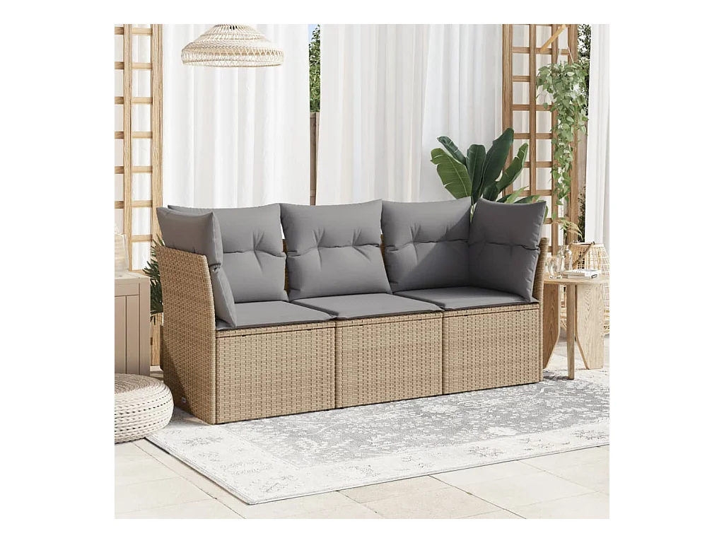 3-tlg. Garten-Sofagarnitur,Gartenmöbel-Set mit Kissen Beige Poly Rattan -gkd110301