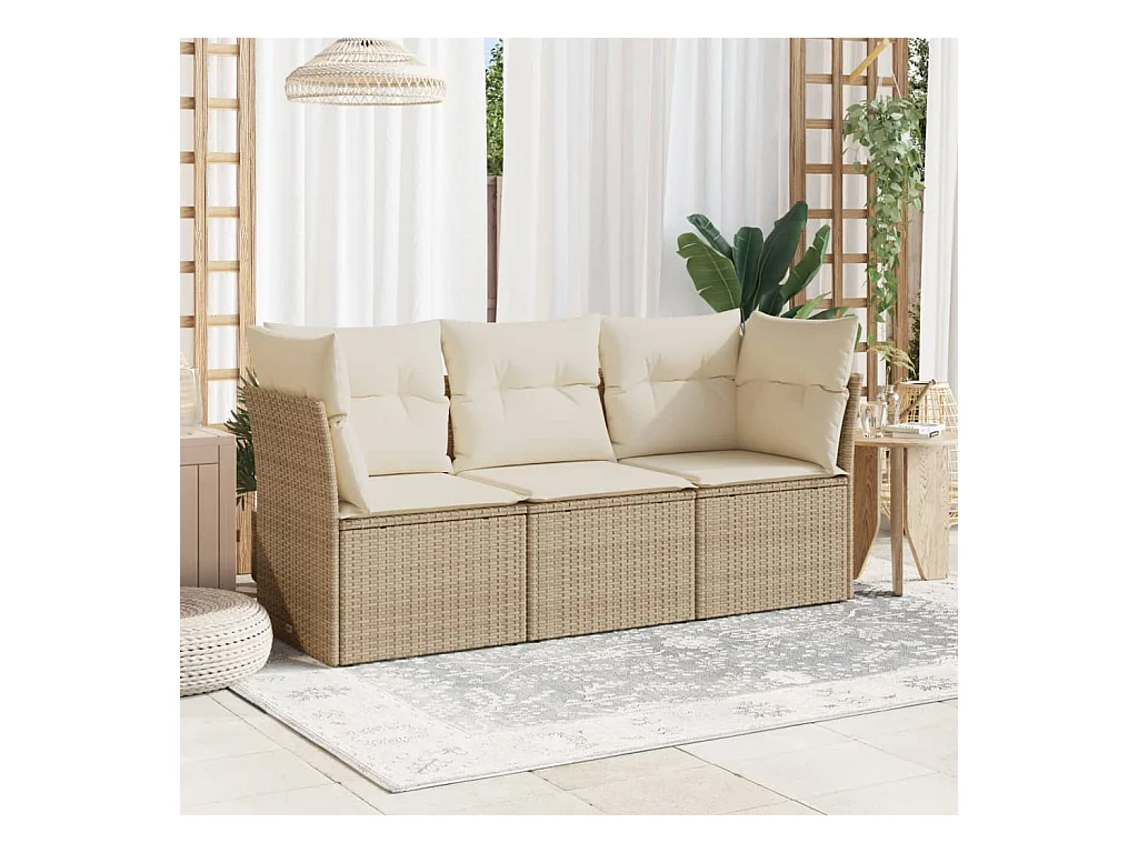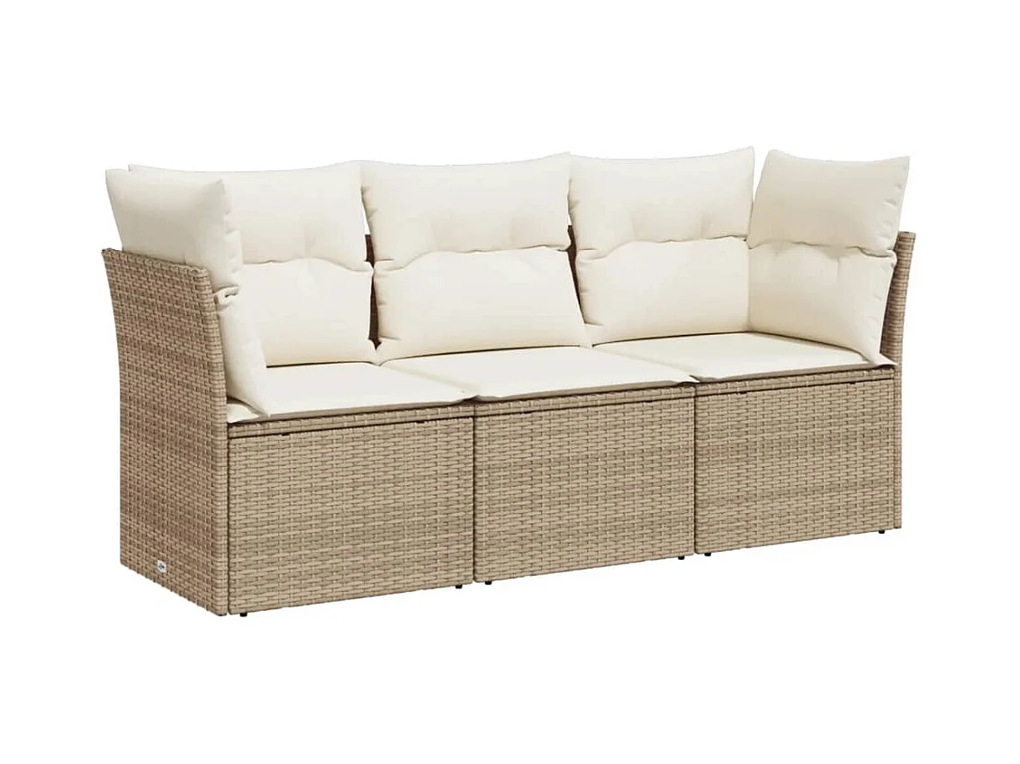 3-tlg. Garten-Sofagarnitur,Gartenmöbel-Set mit Kissen Beige Poly Rattan -gkd396446