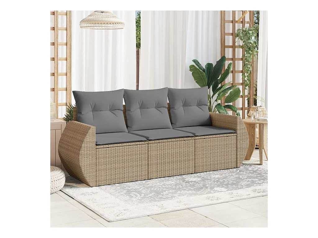 3-tlg. Garten-Sofagarnitur,Gartenmöbel-Set mit Kissen Beige Poly Rattan -gkd406516