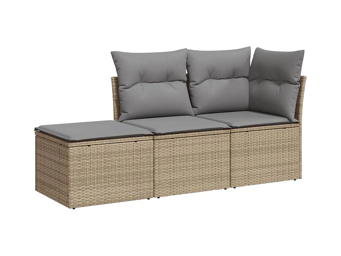 3-tlg. Garten-Sofagarnitur,Gartenmöbel-Set mit Kissen Beige Poly Rattan -gkd647635