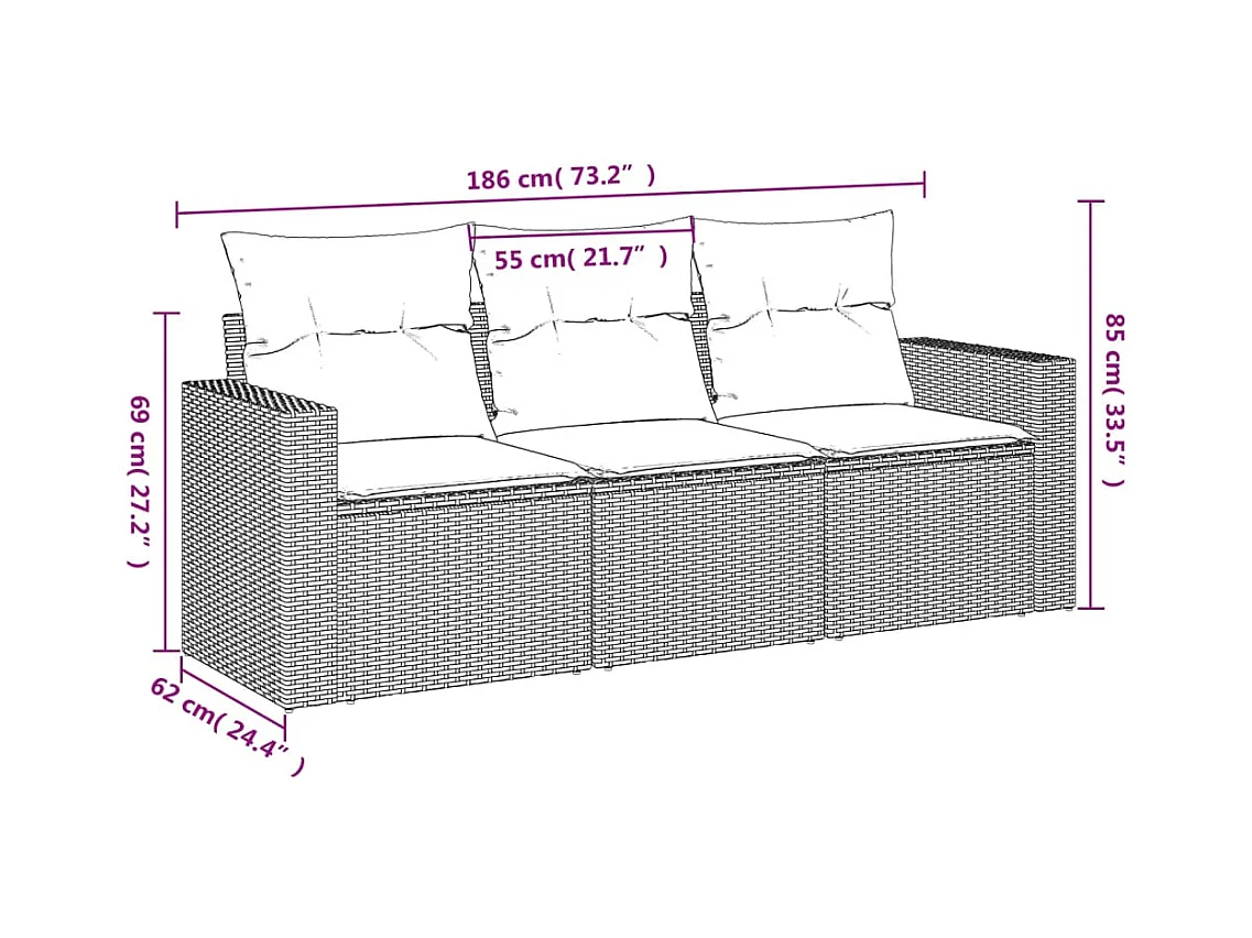 3-tlg. Garten-Sofagarnitur mit Kissen Braun Poly Rattan