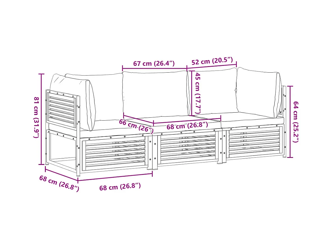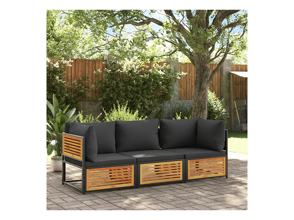 3-tlg. Garten-Sofagarnitur mit Kissen Massivholz Akazie