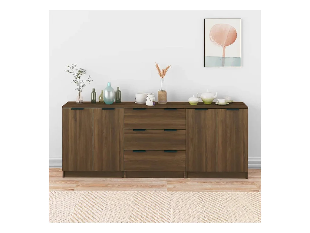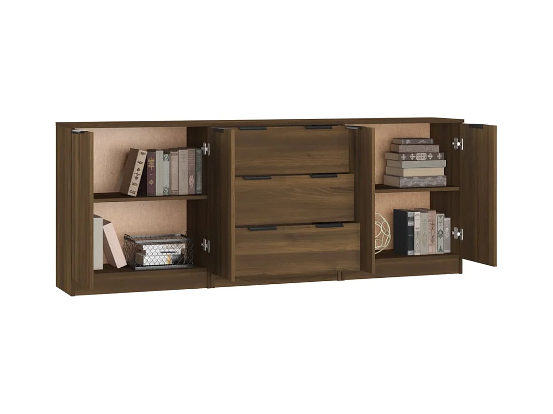 3-tlg. Sideboard Anrichte Braun Eiche-Optik Holzwerkstoff -RM45666