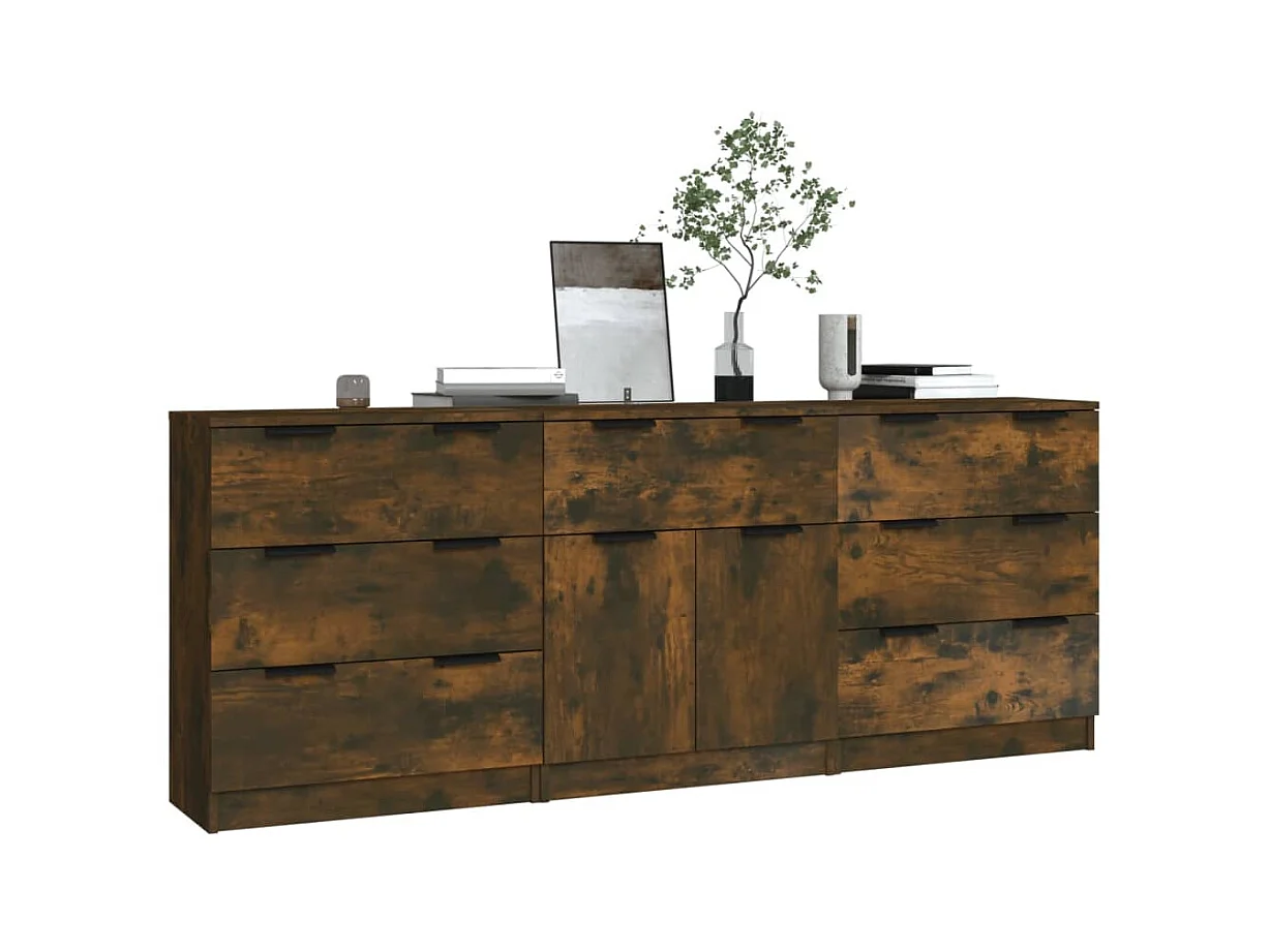 3-tlg. Sideboard Anrichte Räuchereiche Holzwerkstoff -RM89258