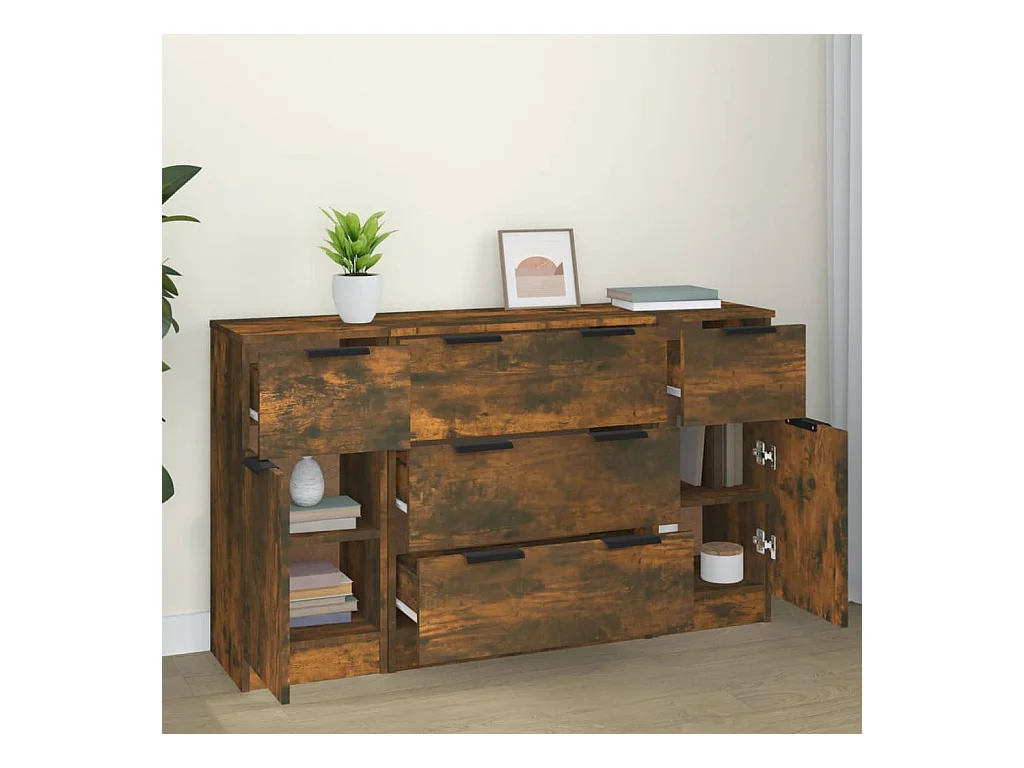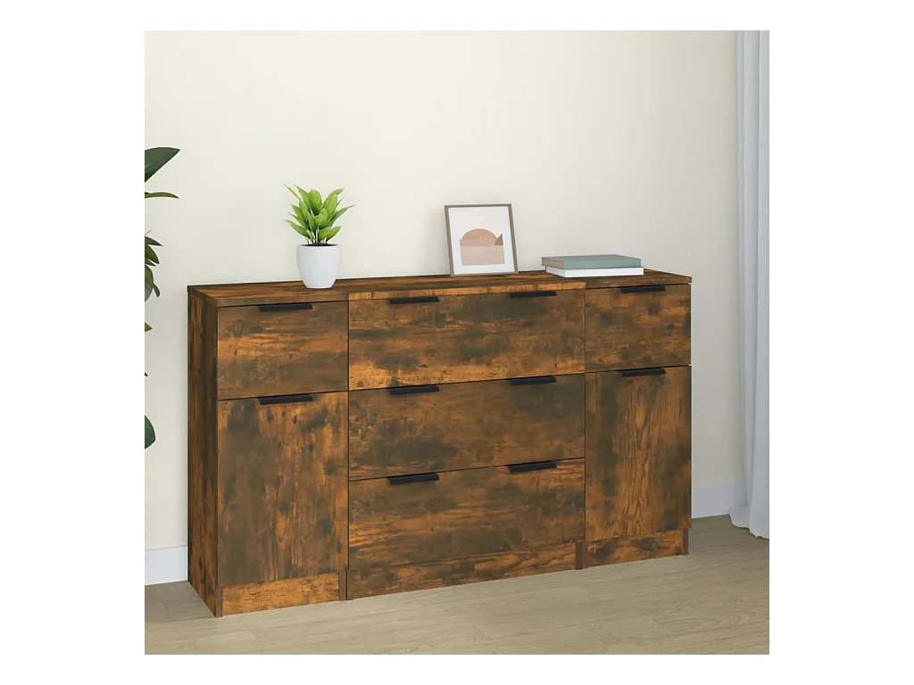 3-tlg. Sideboard-Set Anrichte Räuchereiche Holzwerkstoff -RM28122