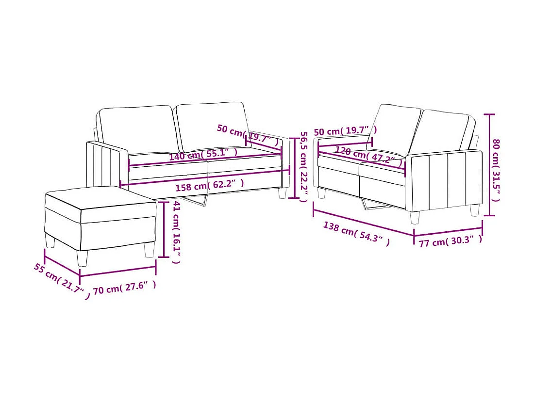 3-tlg. Sofagarnitur mit Kissen Cappuccino-Braun Kunstleder
