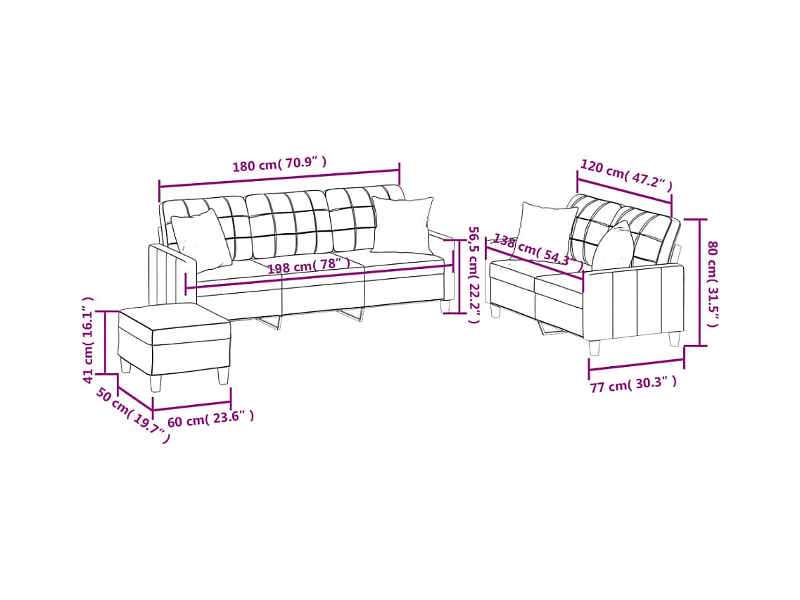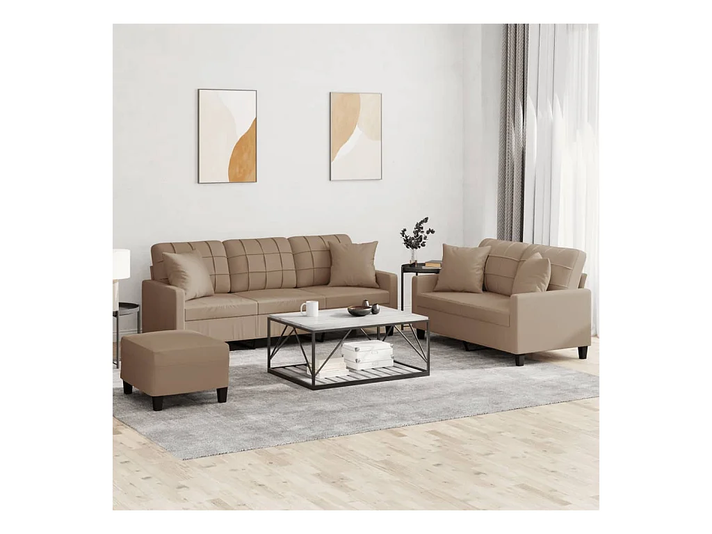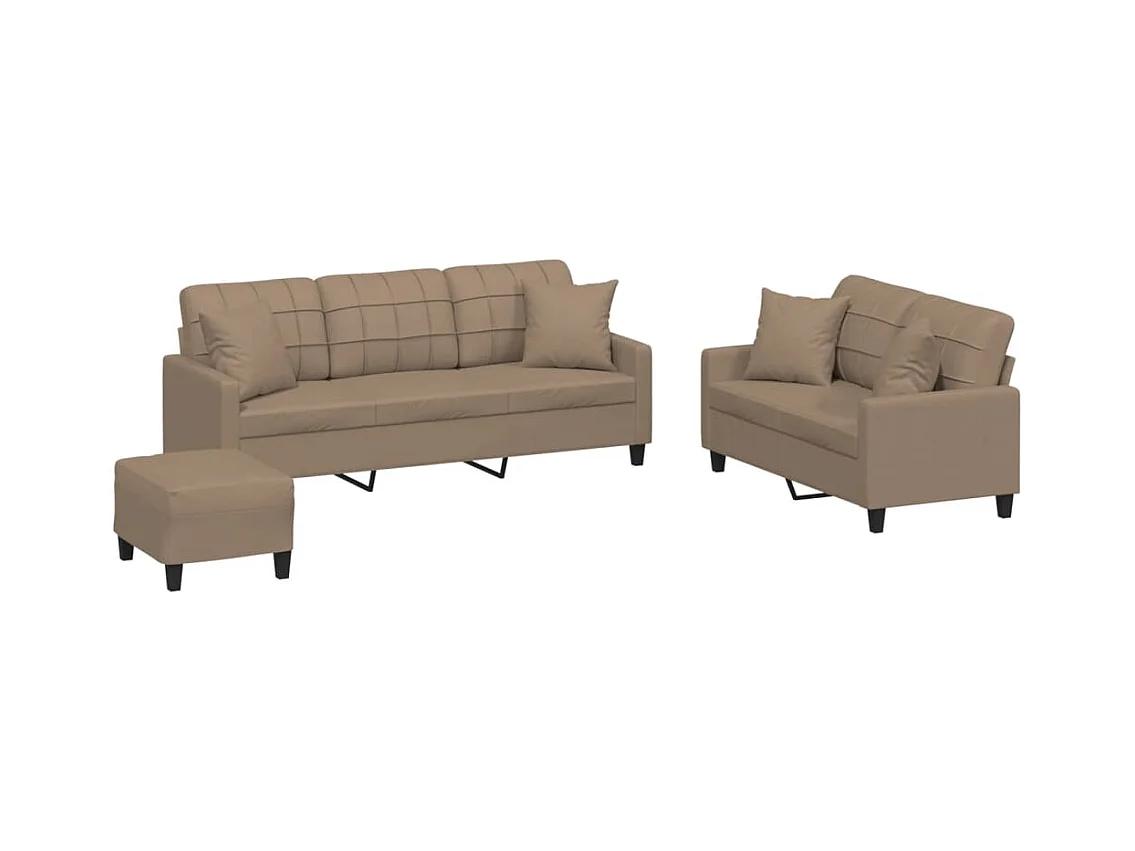 3-tlg. Sofagarnitur mit Kissen Cappuccino-Braun Kunstleder