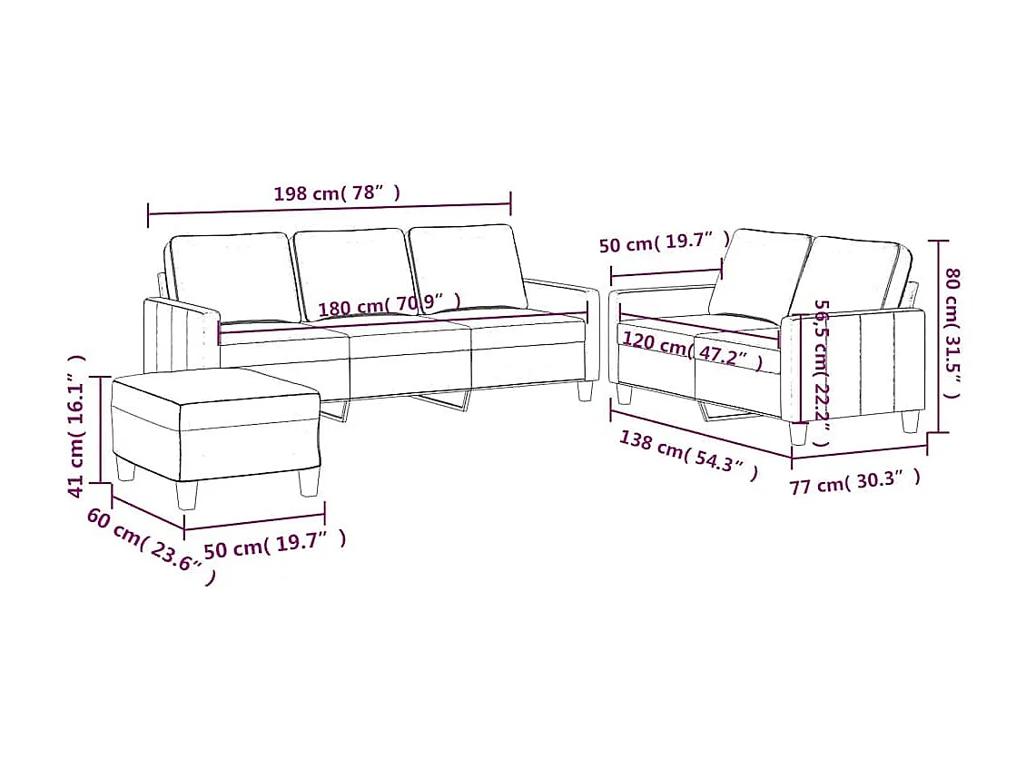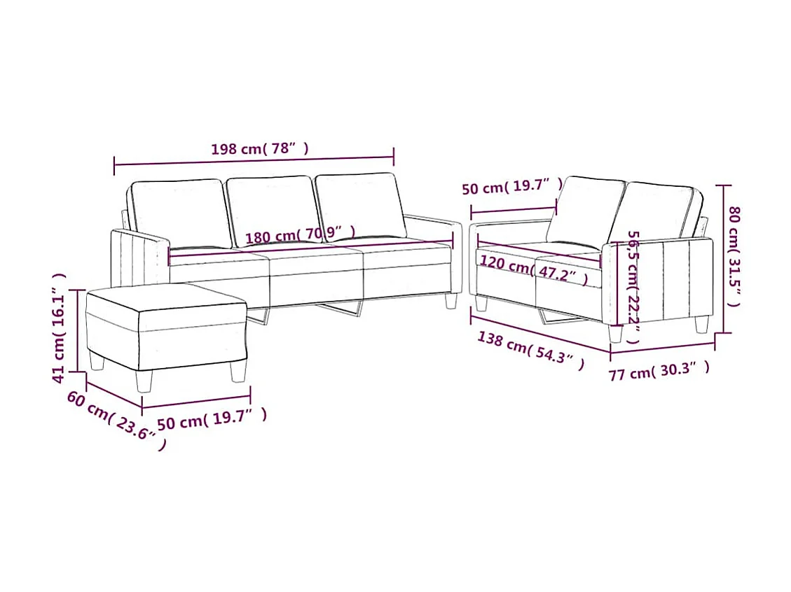 3-tlg. Sofagarnitur mit Kissen Creme Samt