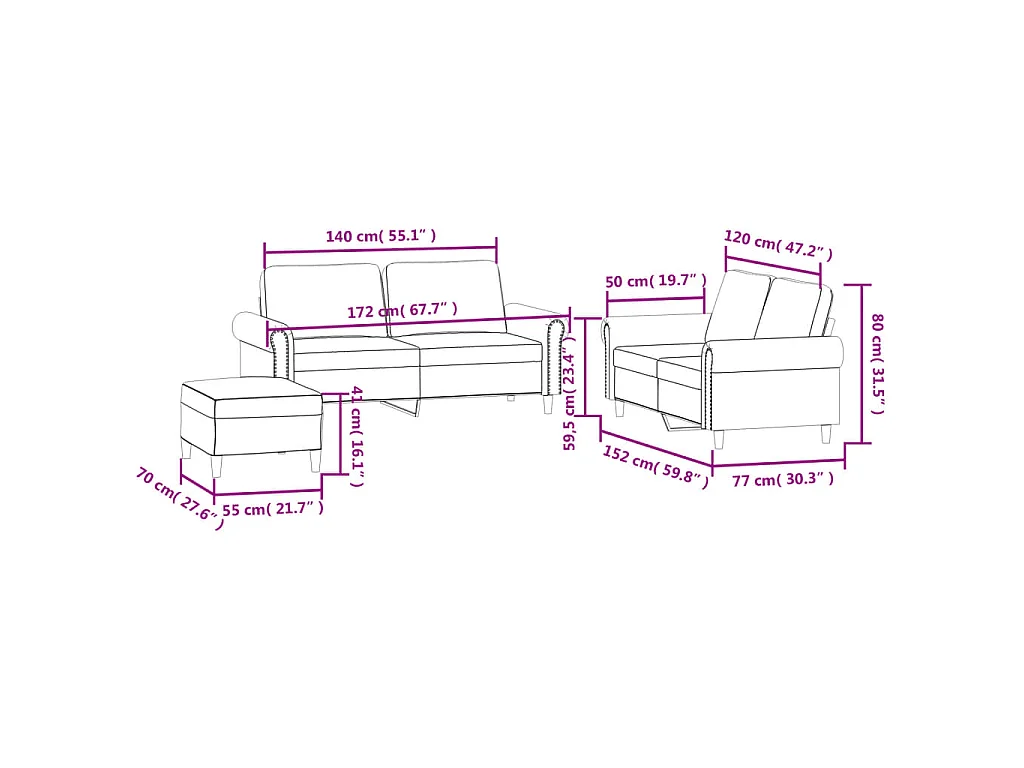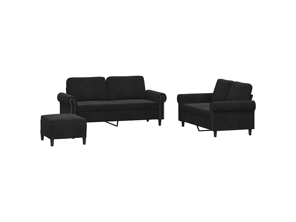 3-tlg. Sofagarnitur mit Kissen Schwarz Samt