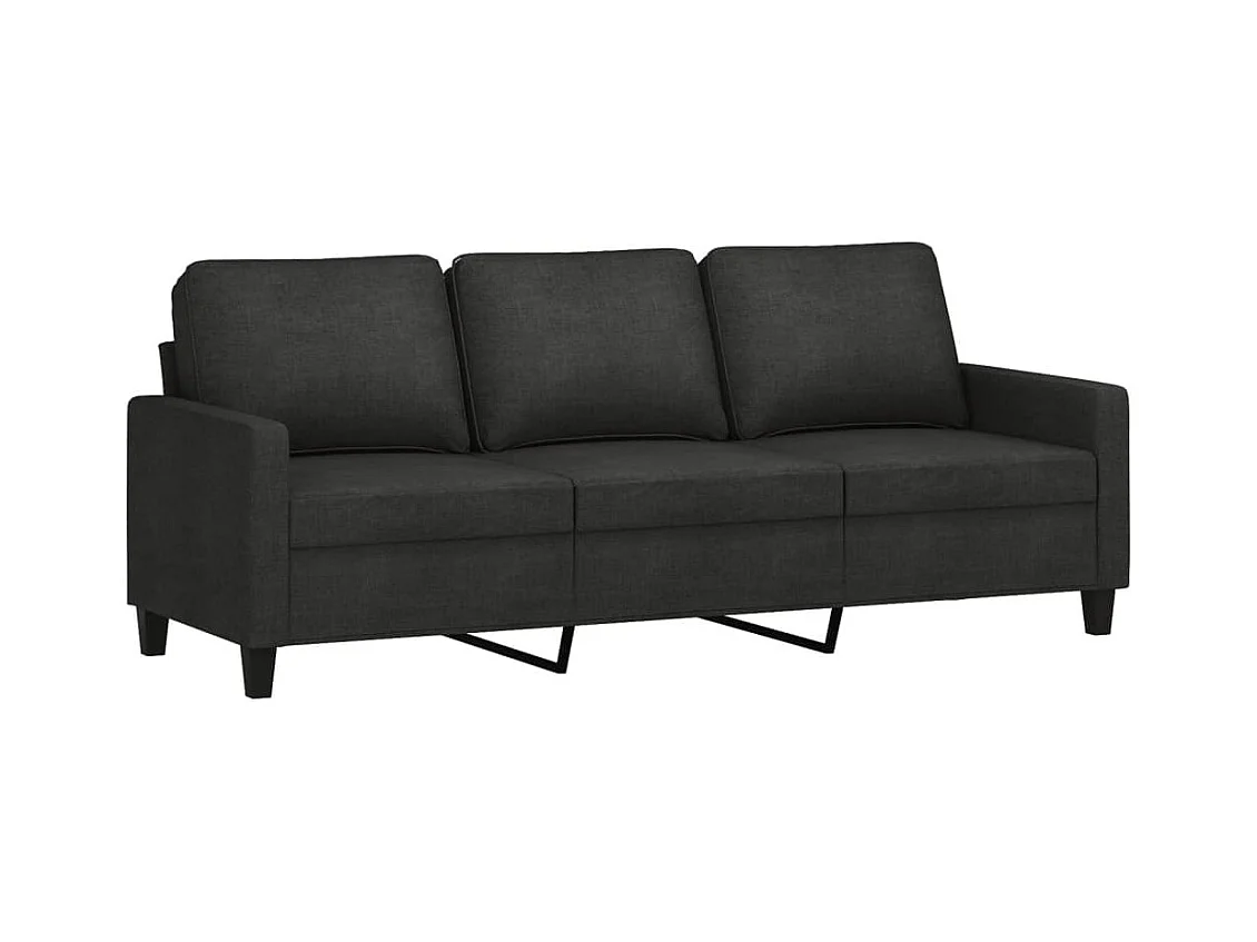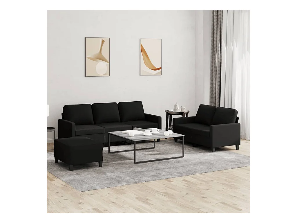 3-tlg. Sofagarnitur mit Kissen Schwarz Stoff