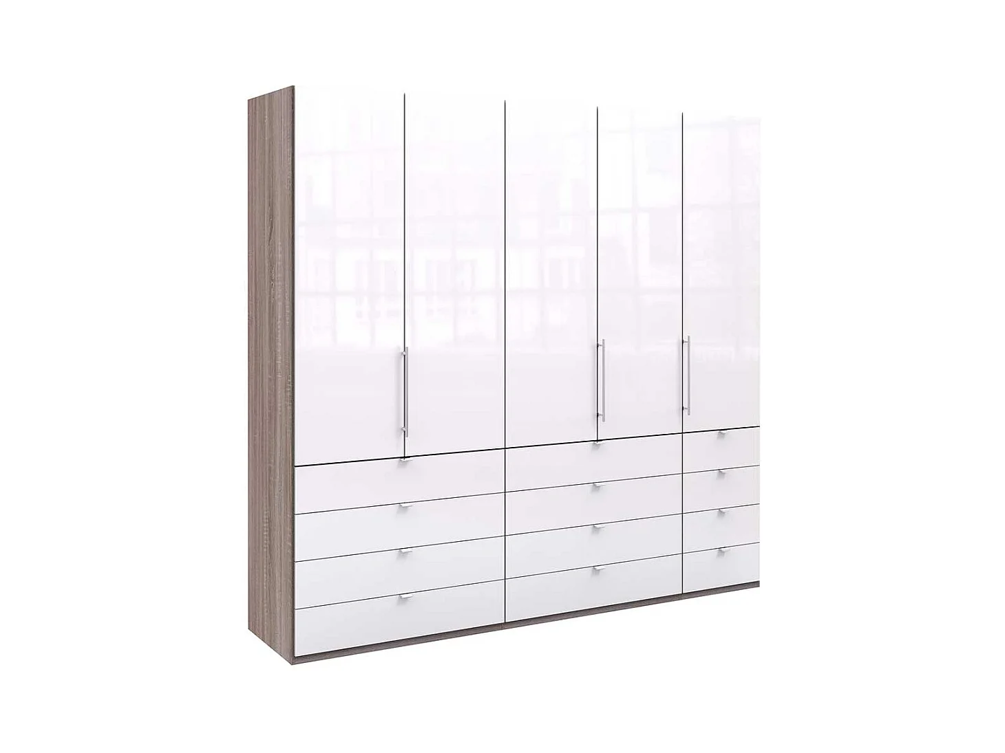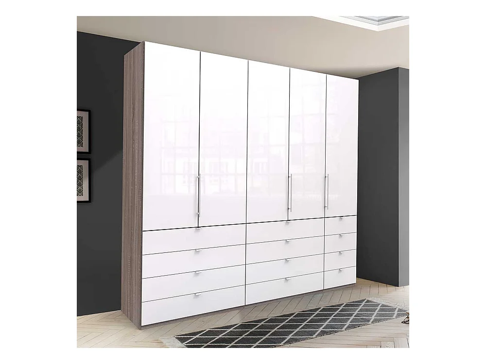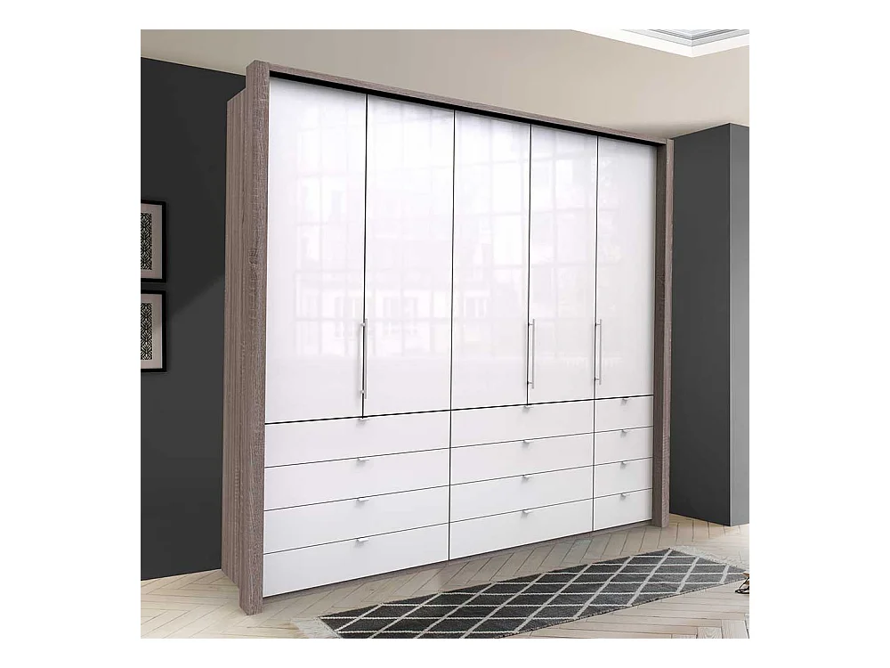 3 türiger Kleiderschrank mit vielen Schubladen Weiß Eiche Trüffelfarben