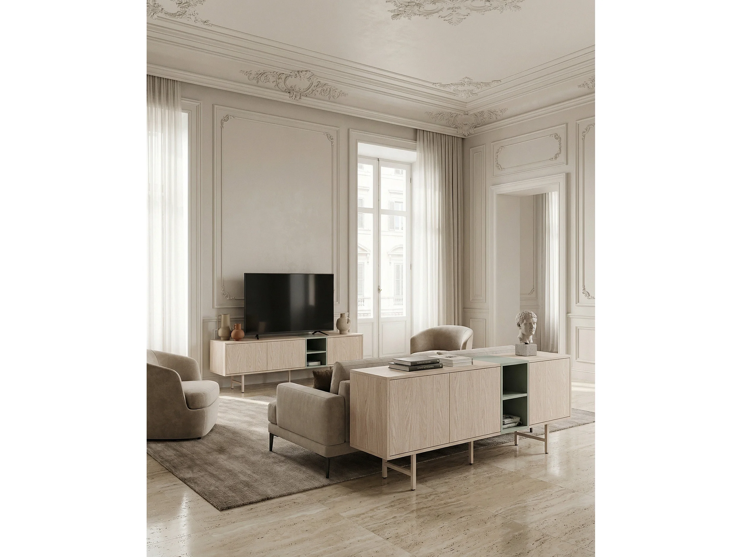 3-türiger TV-Schrank Metallbeinen 180x55 cm