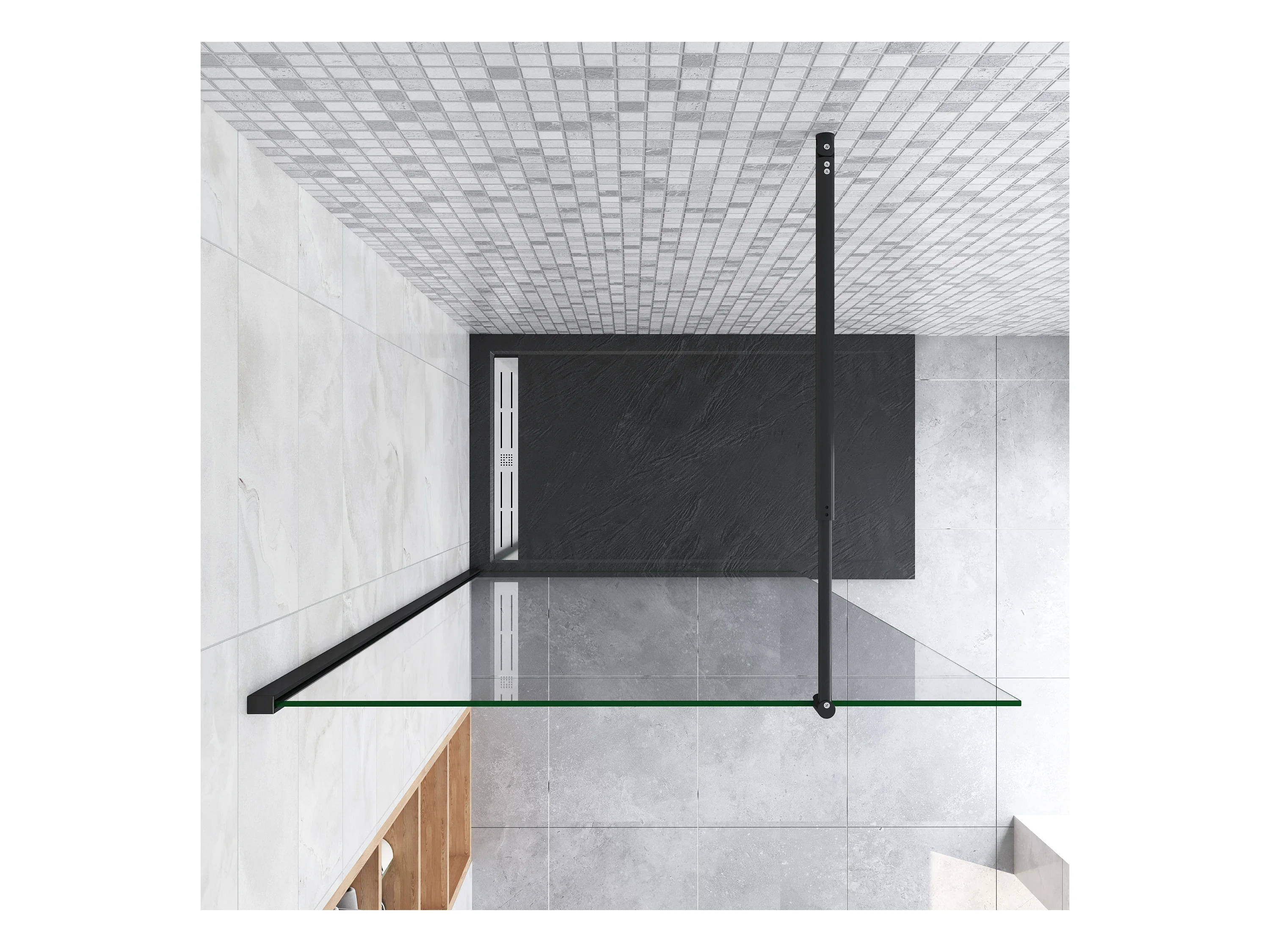 30x200cm Schwarzrahmen Walk in Duschkabine Duschwand +70-120cm Stabilisator 8mm NANO ESG-Glas Duschabtrennung Duschtrennwand
