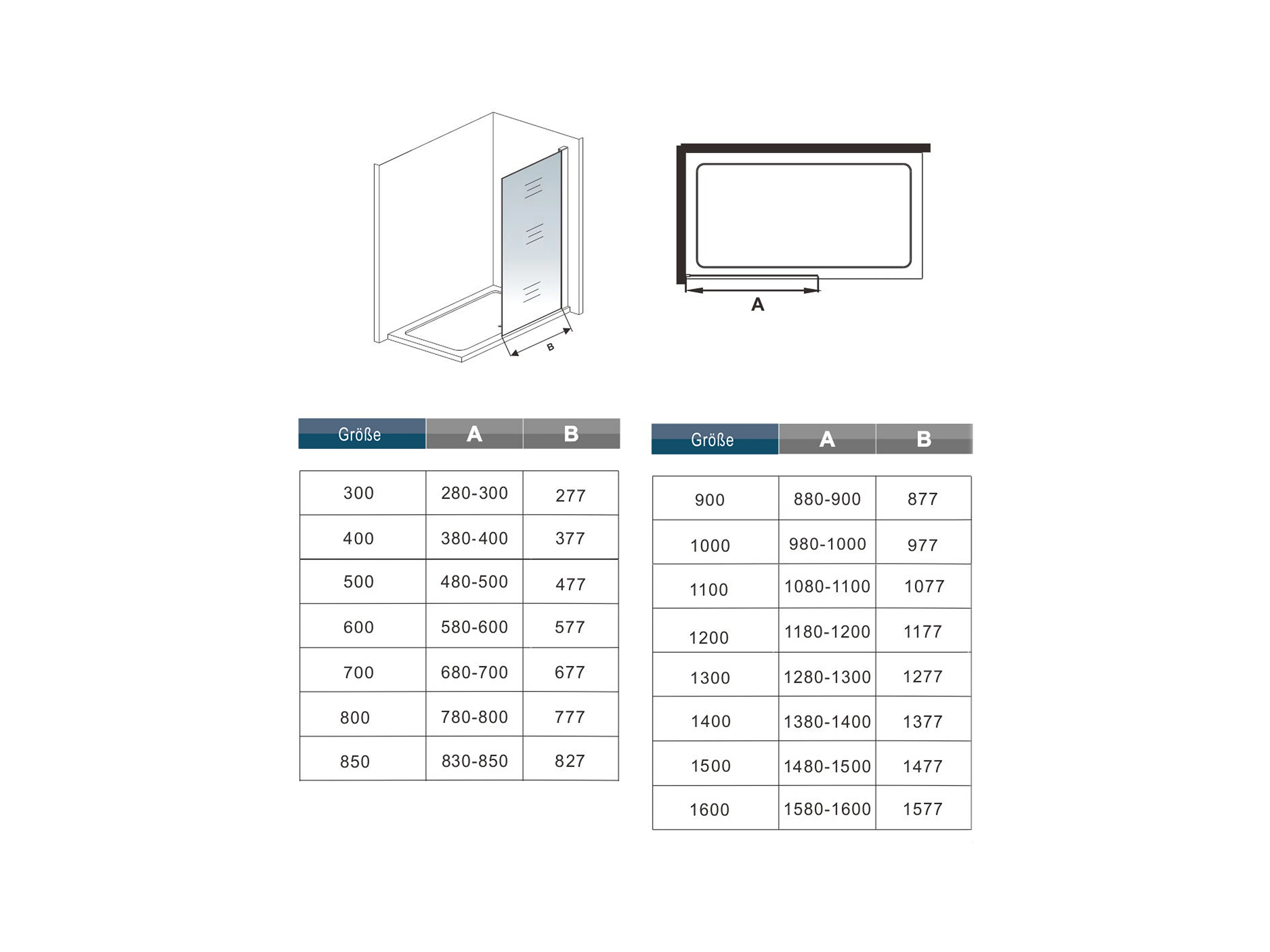 30x200cm Walk in Duschwand Panel Seitenwand Dussche 8mm NANO Glas 30cm Wasserschutzglas Stabilisationsstange L=900