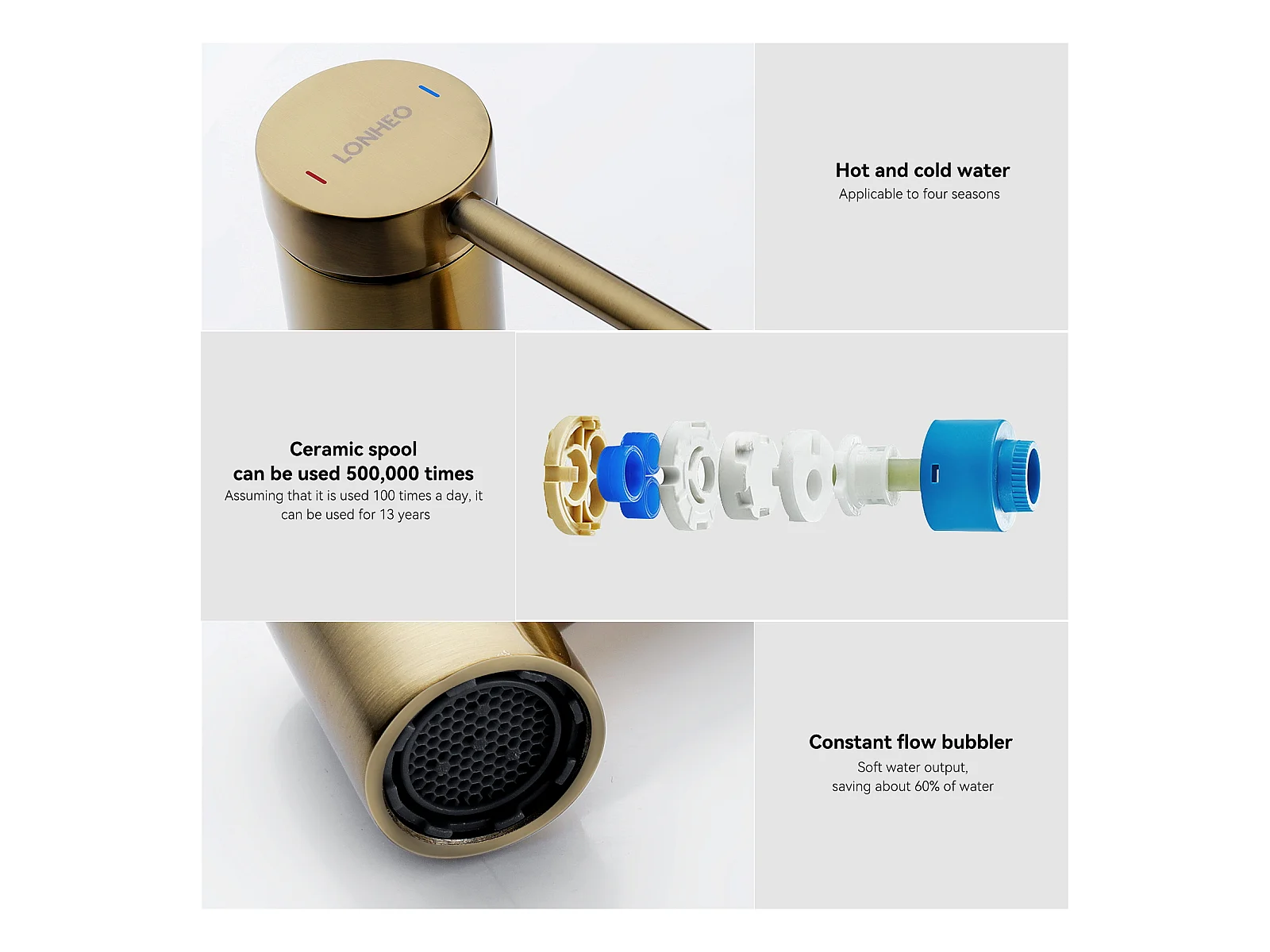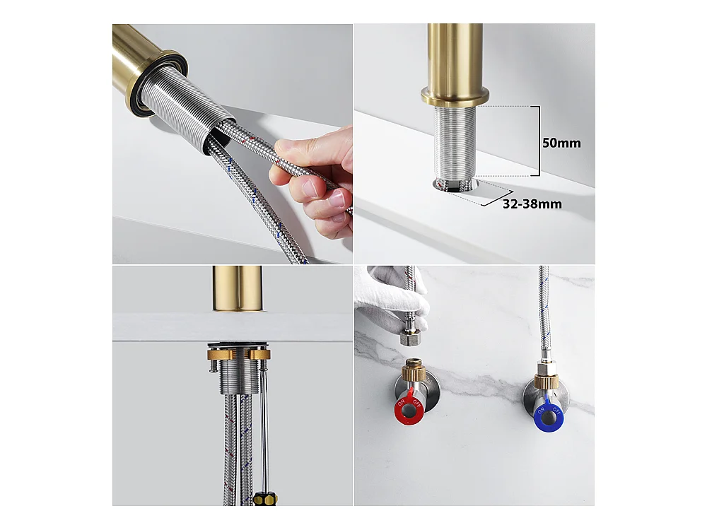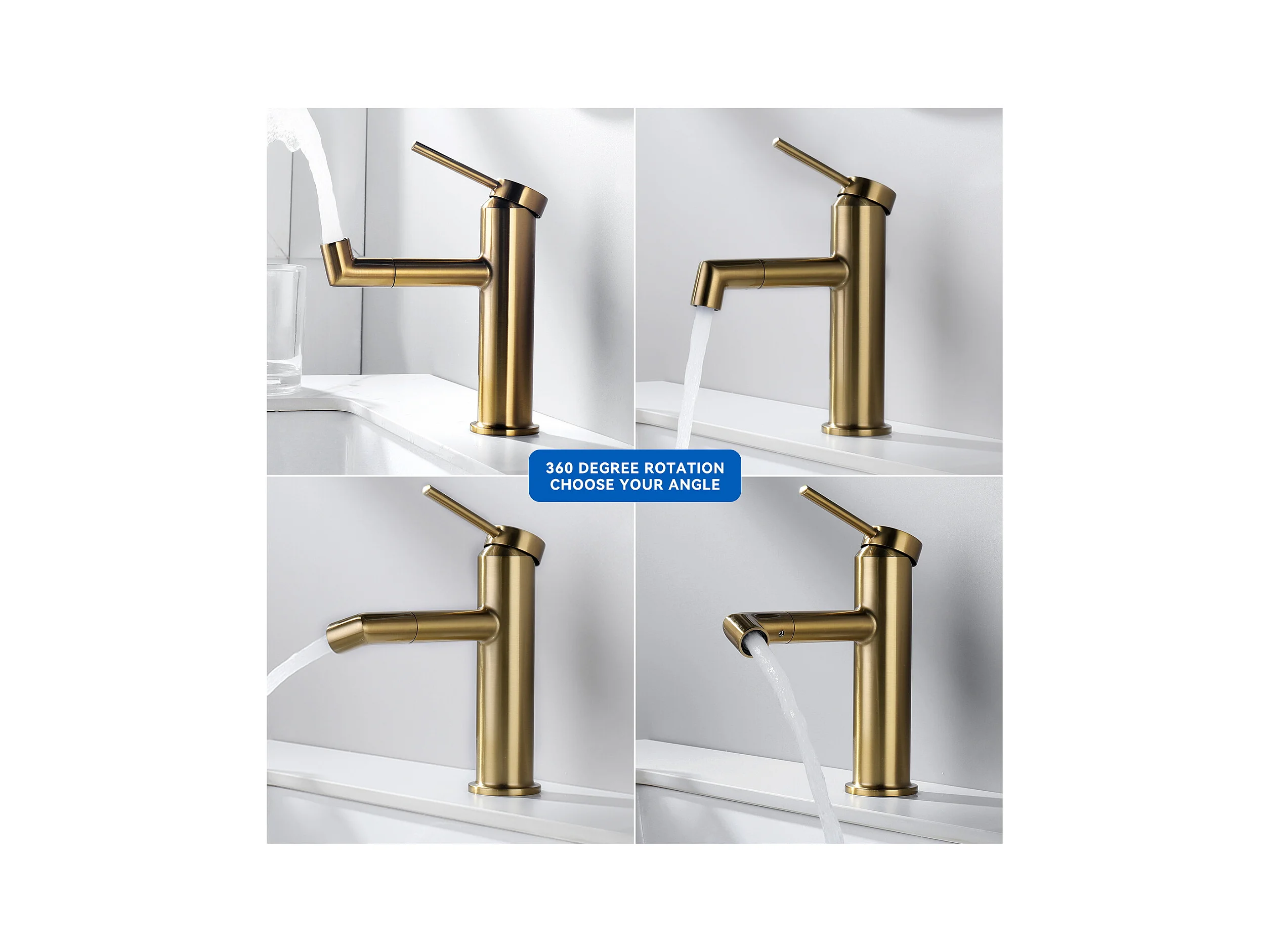 360° drehbarer goldener Waschtisch-Mischhahn, Warm-/Kaltwasser-Waschtischarmatur, Badezimmerarmatur mit abnehmbarem Sprudeler, Edelstahl