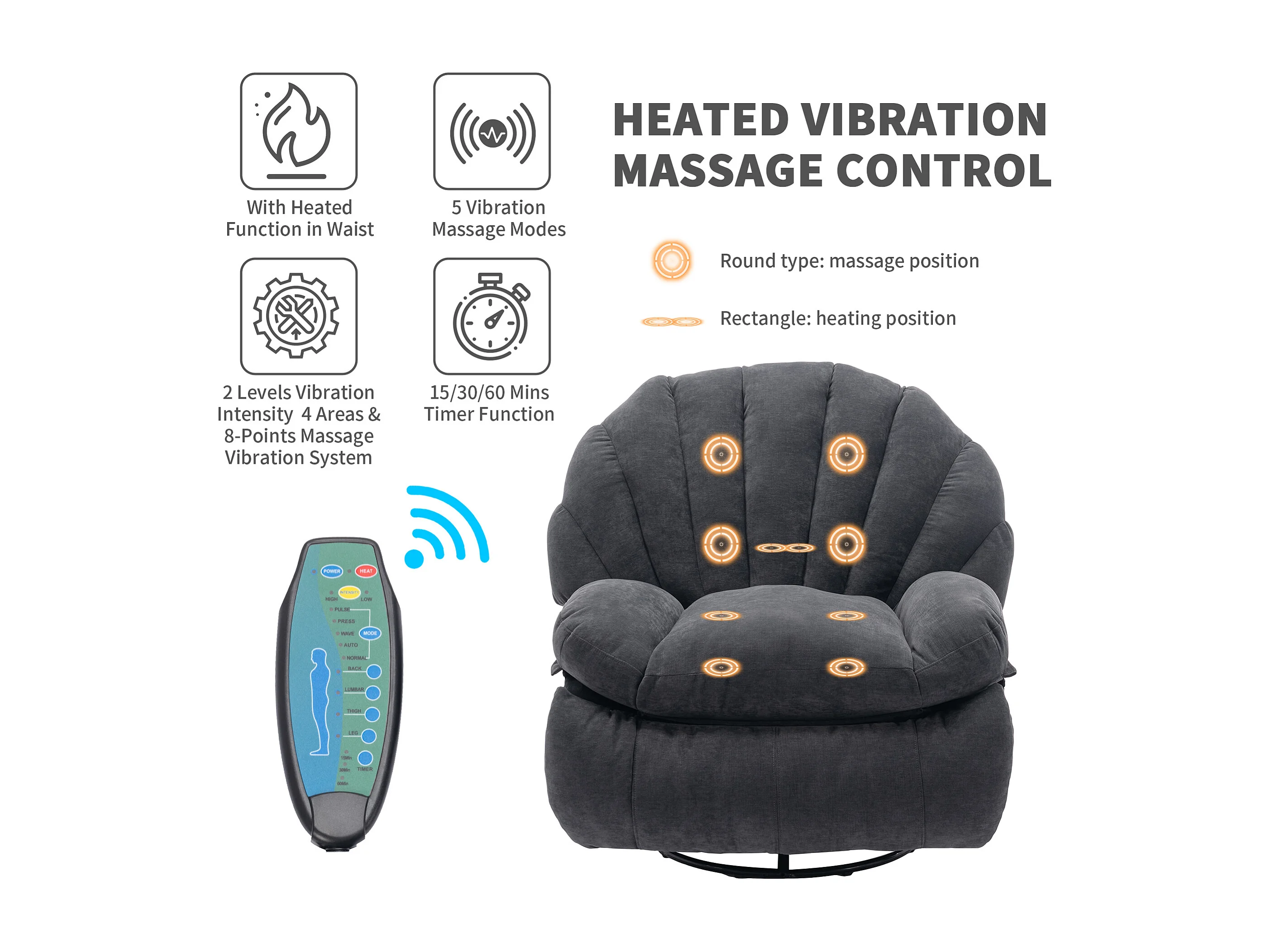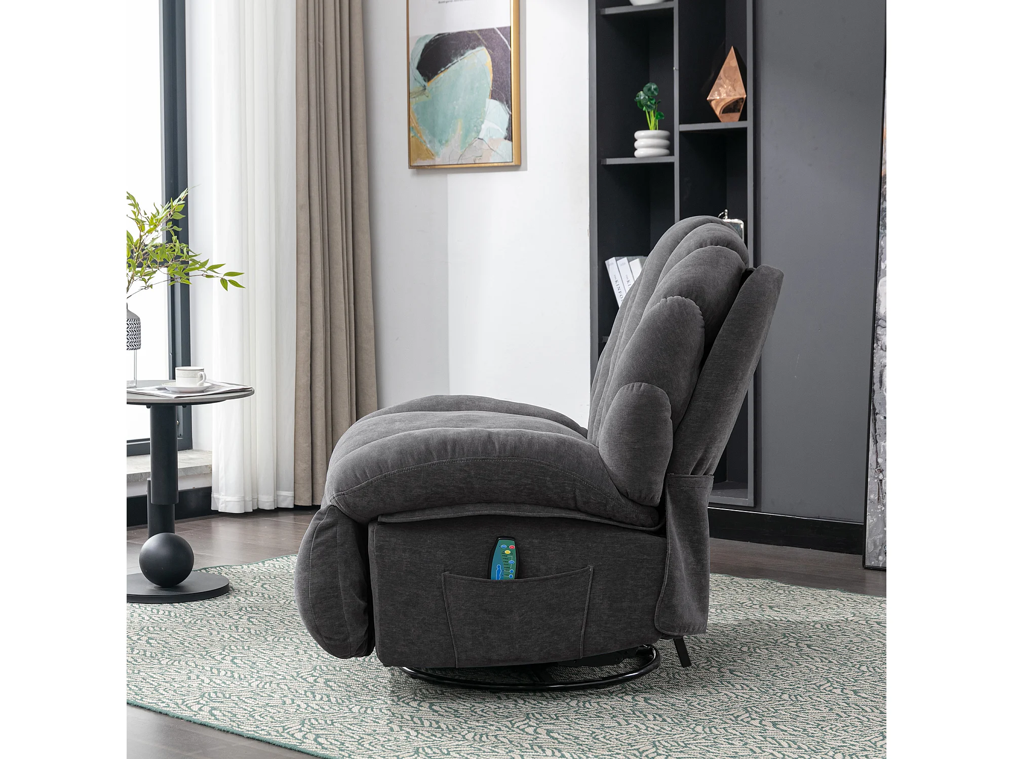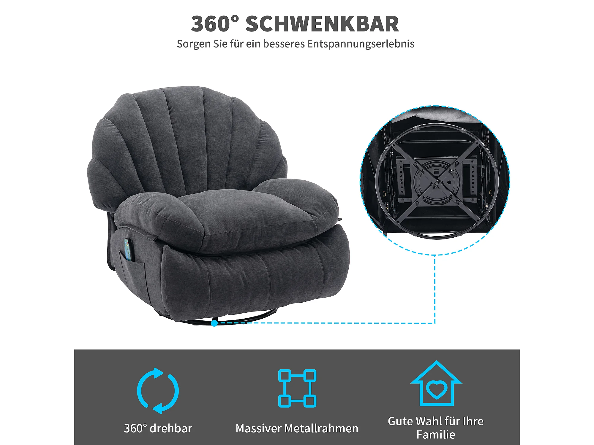 360° drehbarer Massagesessel mit 2 Taschen – Stoffgepolsterter Entspannungssessel – Grau