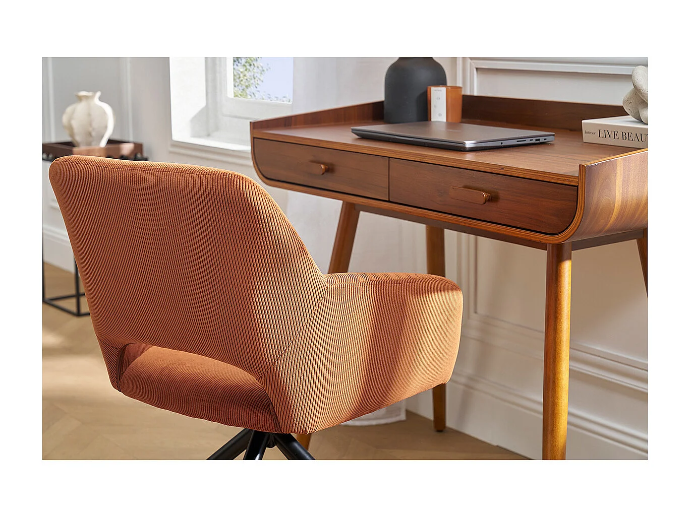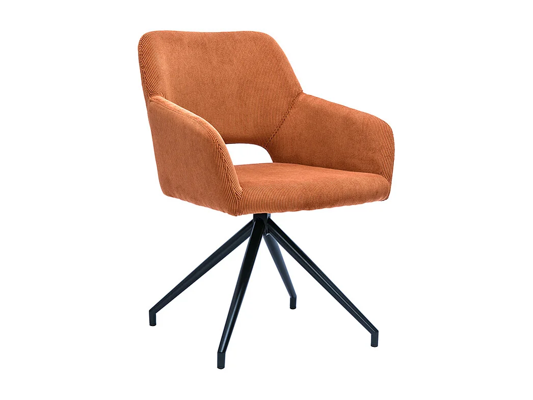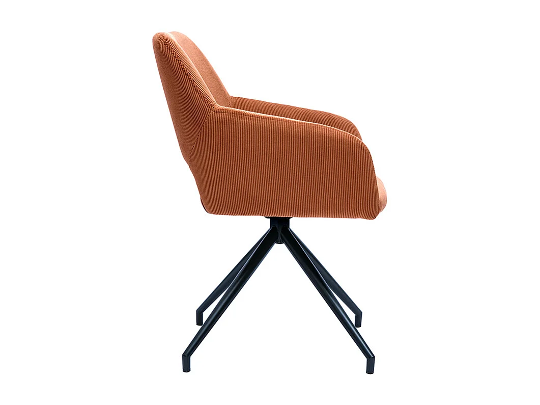 360° Drehstuhl aus gekörntem Samt in Terra Brulée und schwarzem Metall LAURETTE