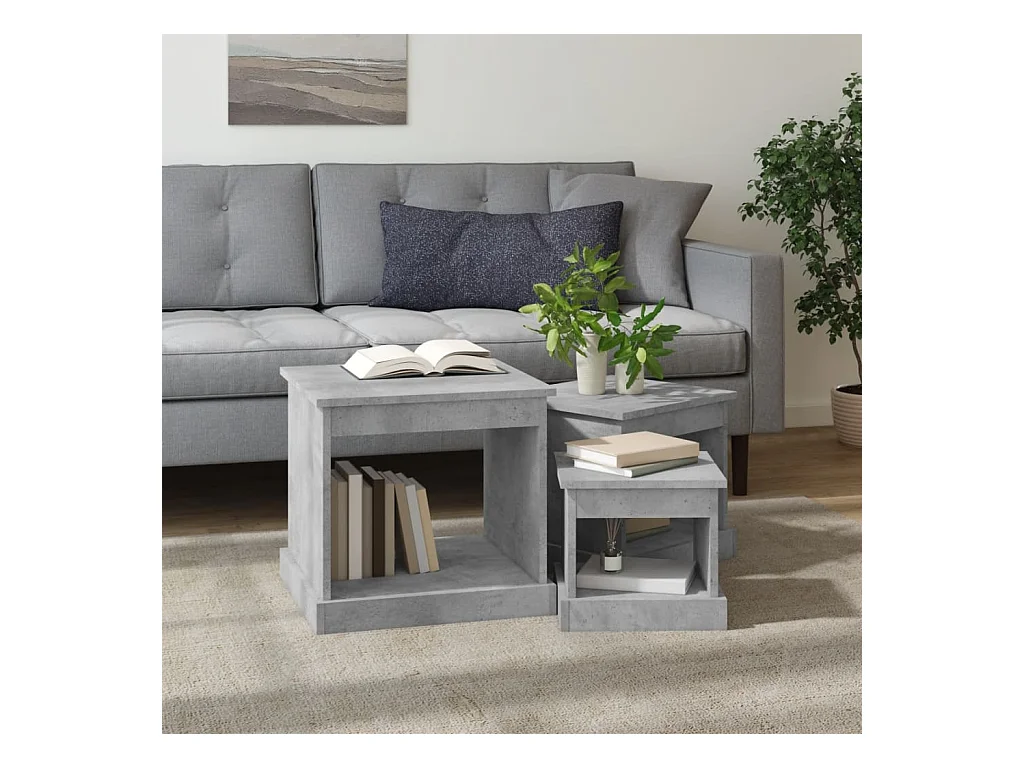 3er-Set Couchtische Beistelltisch Betongrau Holzwerkstoff -MN71271