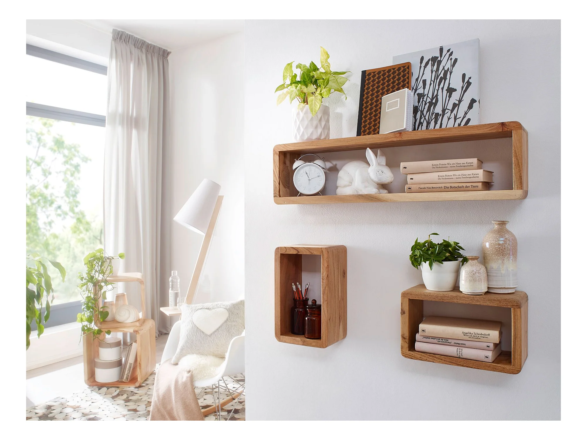 3er Set Wandregale Massivholz Holzregal Landhaus Wandboard Naturprodukt