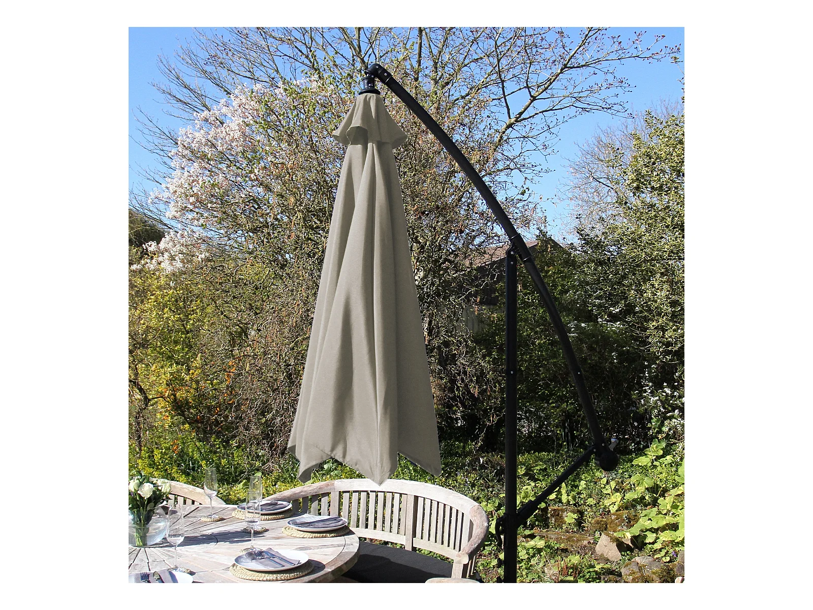 3m freischwingender Sonnenschirm Freischwinger Gartenschirm mit Kippfunktion, Sockel und Hülle im Set Beige