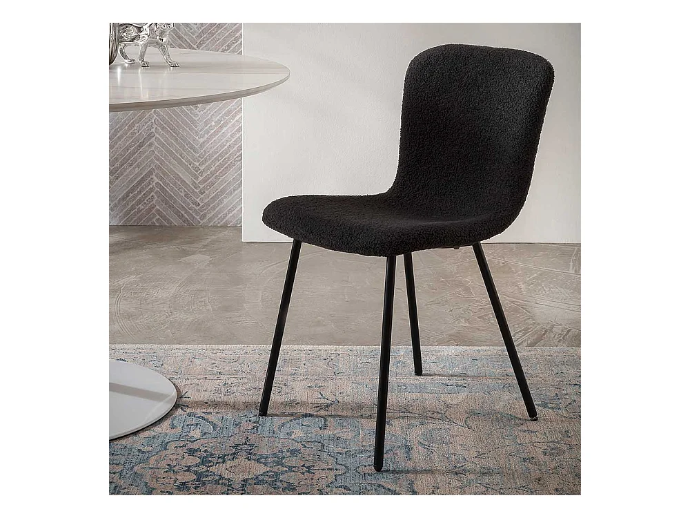 4 Esstisch Stühle schwarz aus Boucle Stoff und Metall 44 cm breit (4er Set)