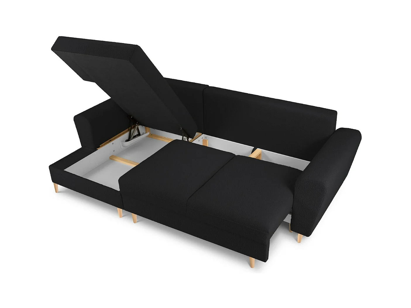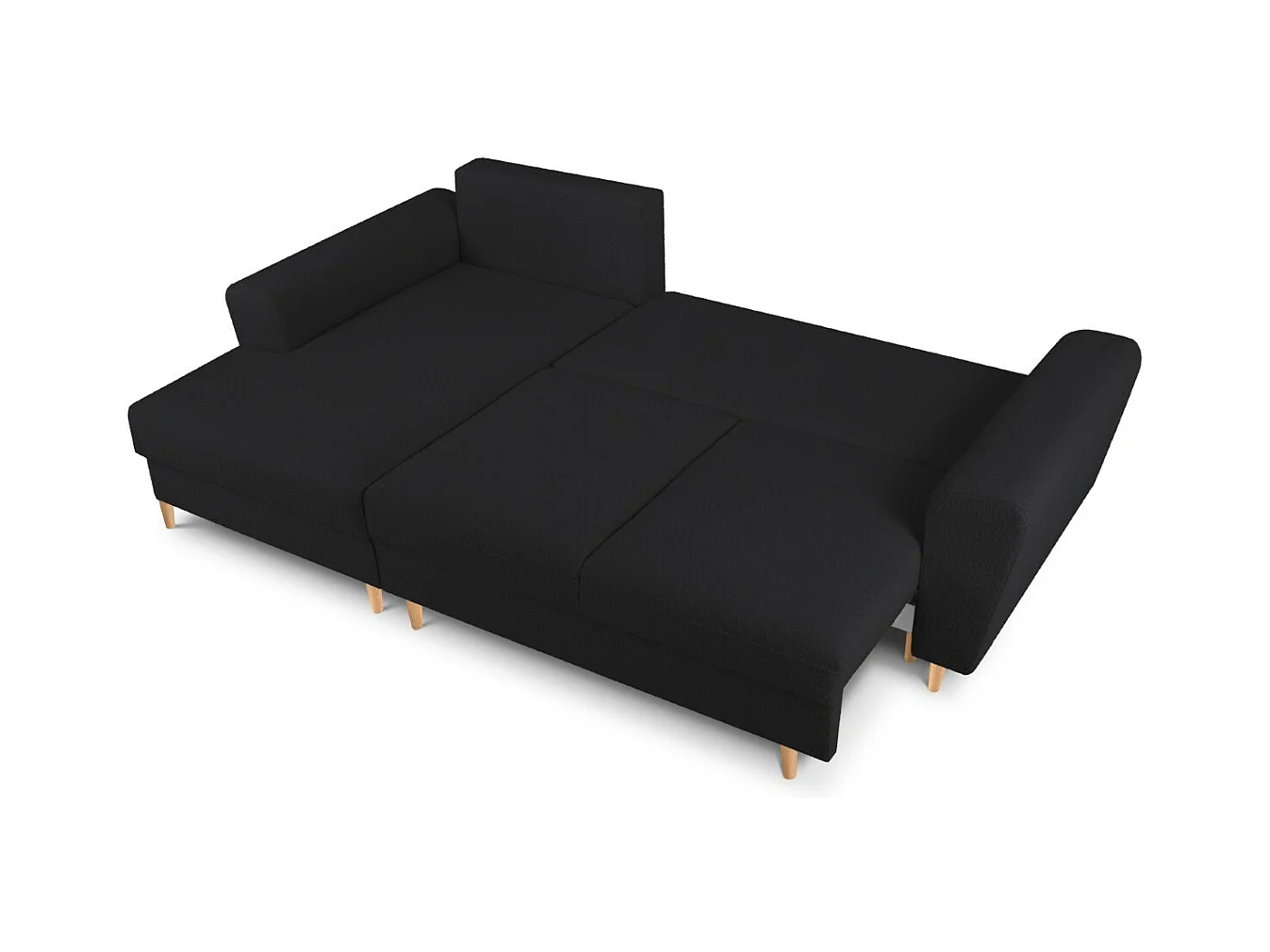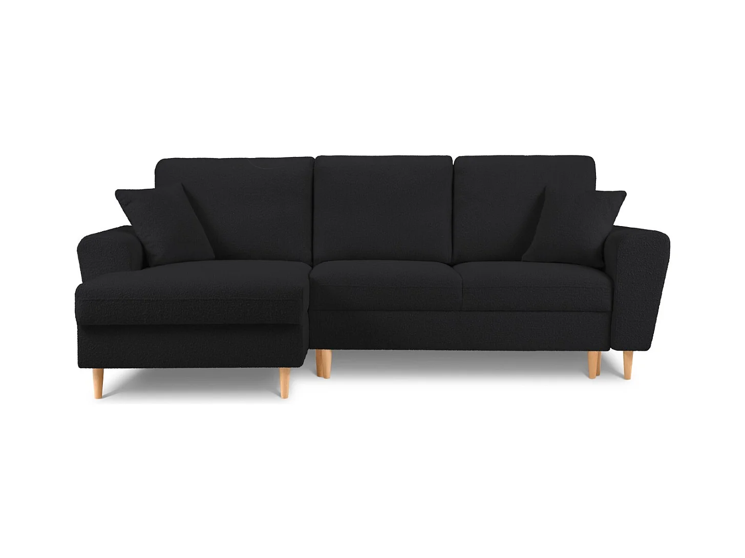 Cosmopolitan Design - 4-Sitzer ausklappbares Ecksofa links mit Container "Kyoto" aus Boucle schwarz - 241x145x88cm