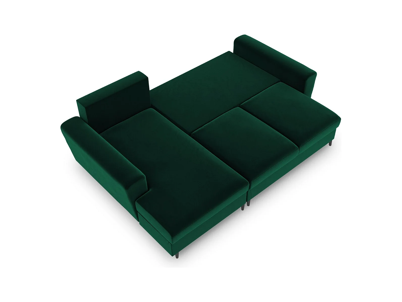 Cosmopolitan Design - 4-Sitzer ausklappbares Ecksofa links mit Container "Kyoto" aus Samt flaschengrün - 241x145x88cm
