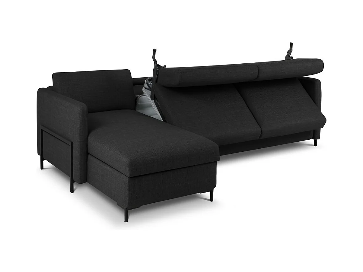 CXL by Christian Lacroix - 4-Sitzer ausklappbares Ecksofa links mit Container "Yanis" Sitzer aus strukturiertem Stoff dunkelgrau - 260x170x80cm
