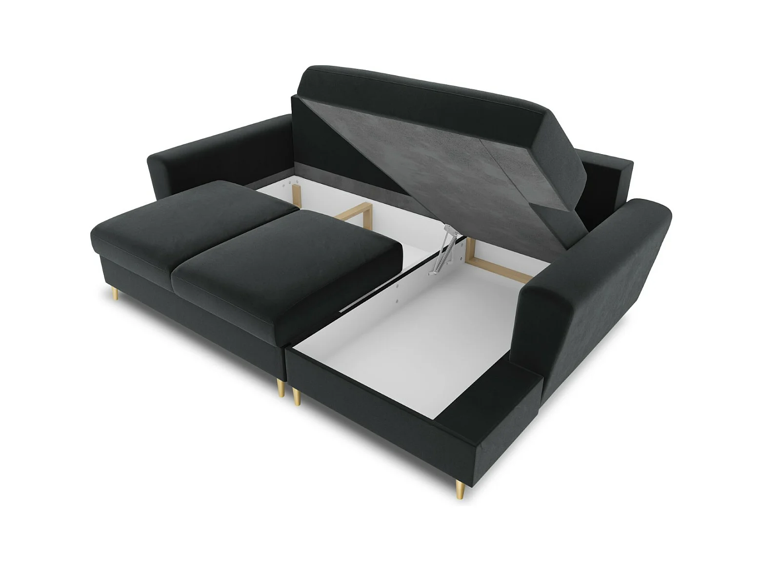 Cosmopolitan Design - 4-Sitzer ausklappbares Ecksofa rechts mit Container "Kyoto" aus Samt dunkelgrau - 241x145x88cm