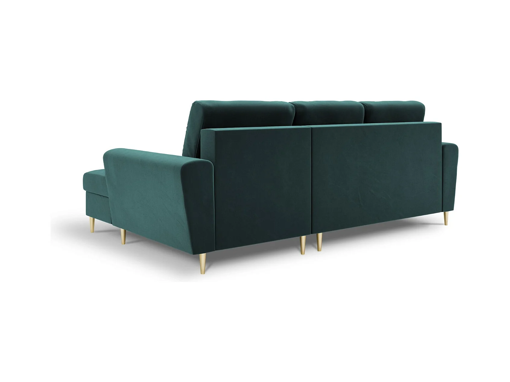Cosmopolitan Design - 4-Sitzer ausklappbares Ecksofa rechts mit Container "Kyoto" aus Samt petrol - 241x145x88cm
