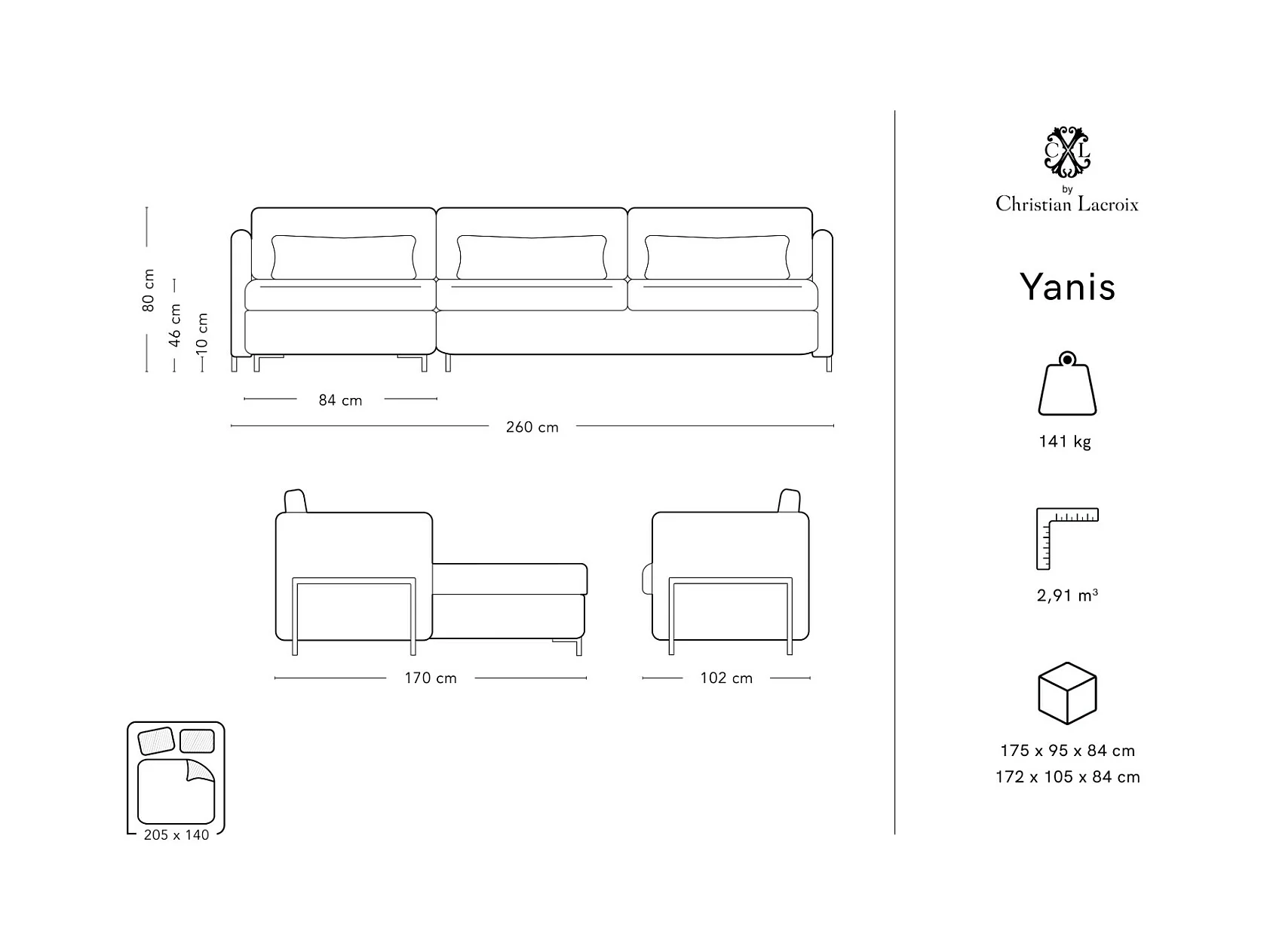 CXL by Christian Lacroix - 4-Sitzer ausklappbares Ecksofa rechts "Yanis" Sitzer aus Samt dunkelgrau - 260x170x80cm